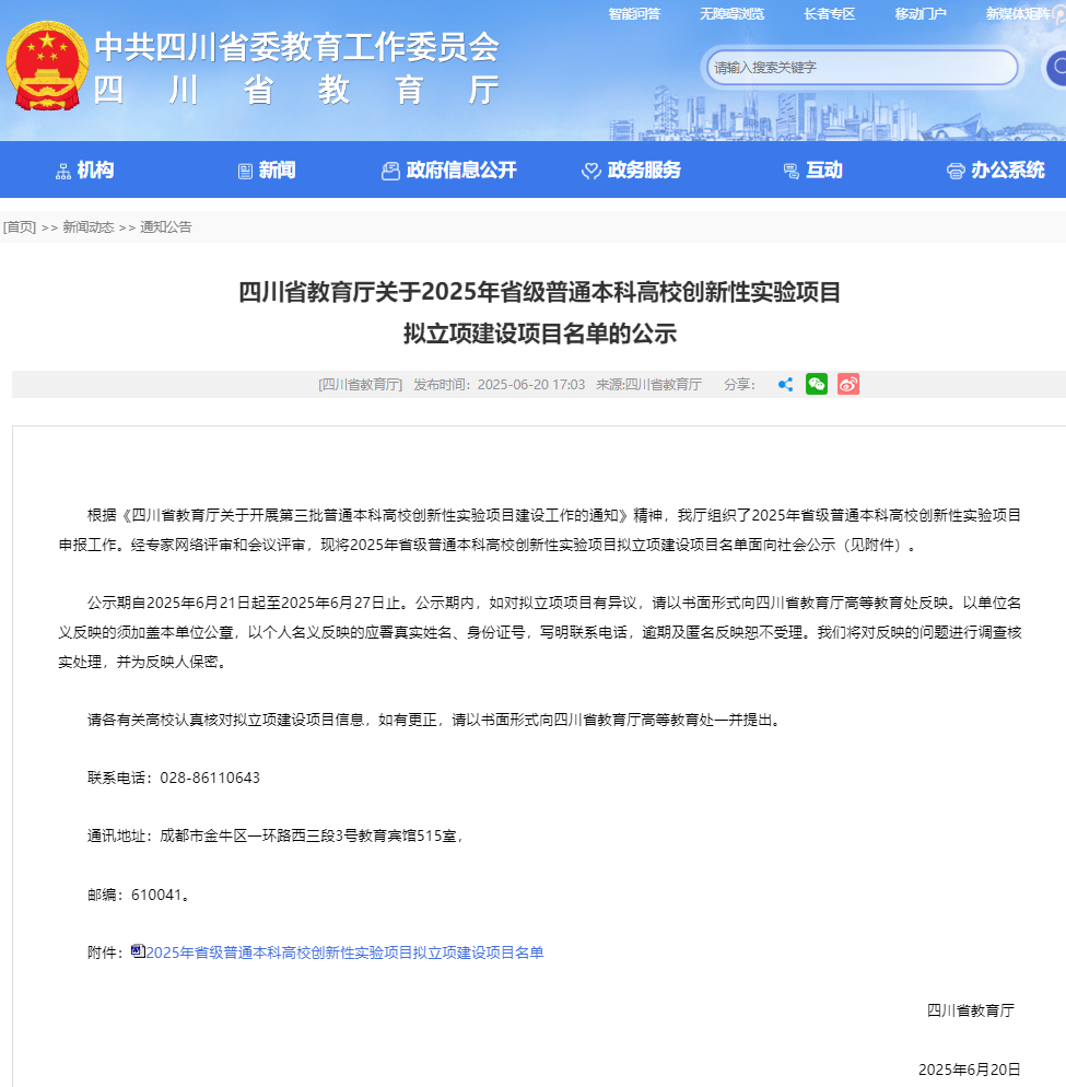 近日,四川省教育厅公示了2025年省级普通本科高校创新性实验项目拟立项建设项目名单,色色动漫