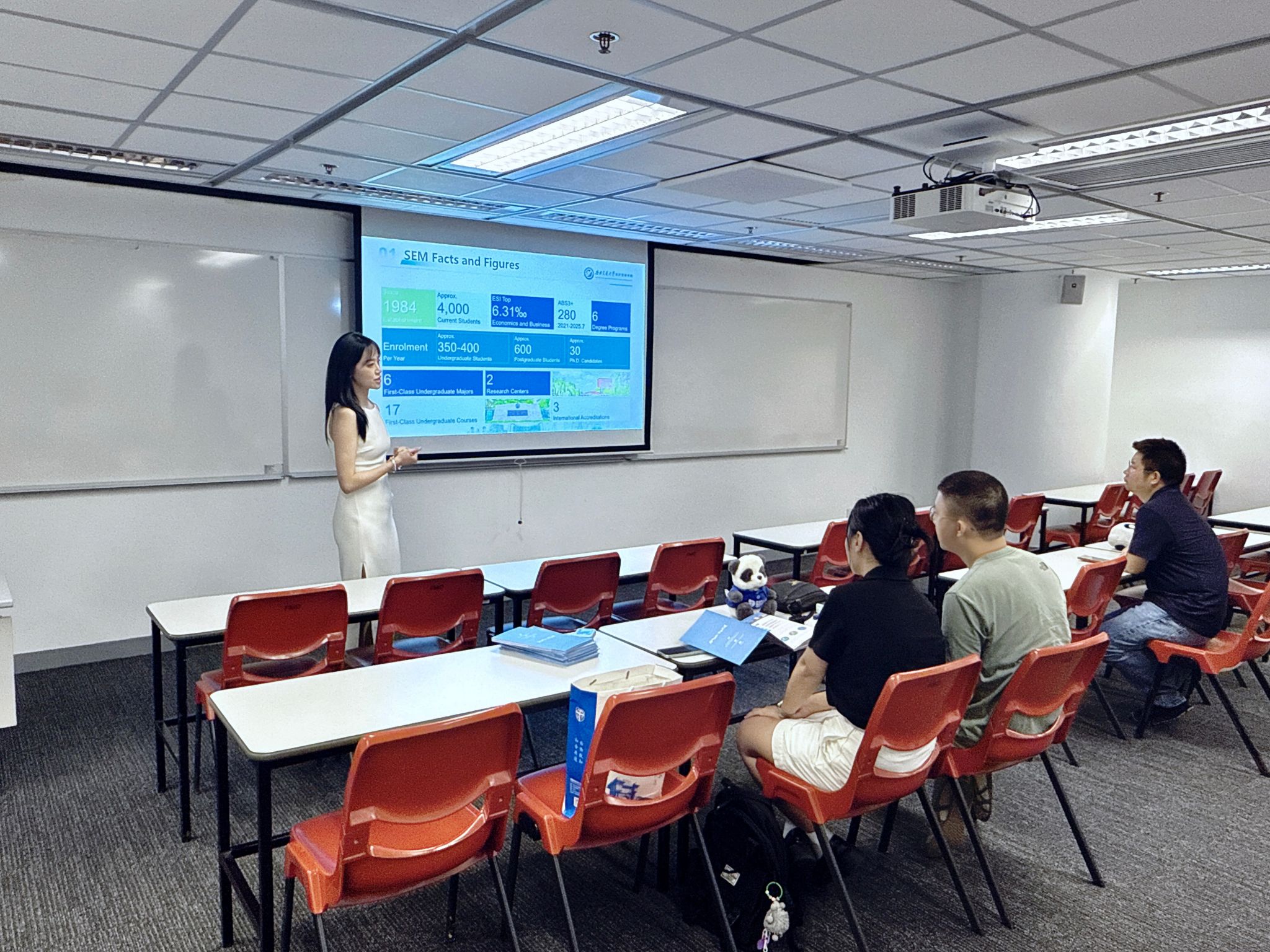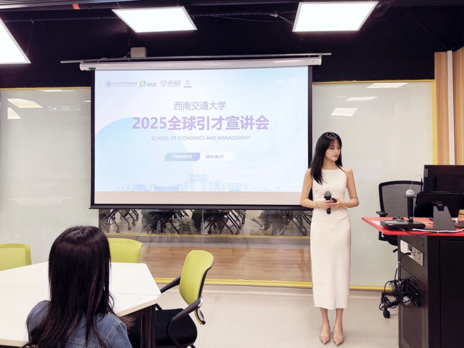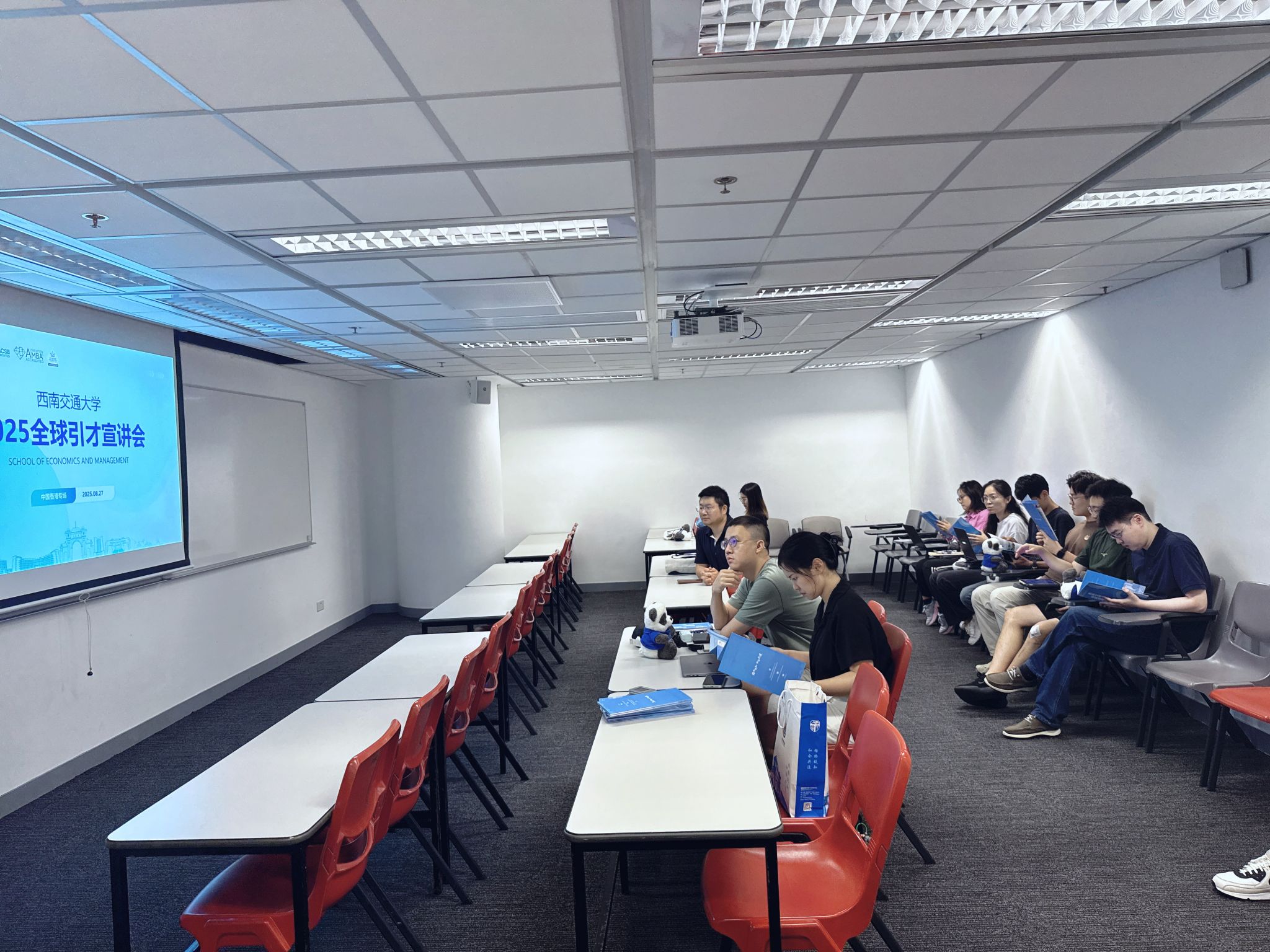 本次香港专场活动聚焦“链接全球智慧,共筑科研高地”核心目标,通过“专场宣讲”与“开放式问答”相结合的形式,为两校学者、博士生搭建深度交流平台。活动现场,学院引才团队代表系统介绍了学院的简况及多层次人才支持体系,并重点解读了学院在管理科学与工程等学科的科研机遇与人才需求,引发在场人才的广泛关注与积极提问。