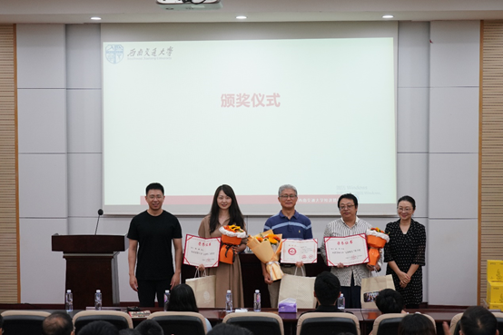 全院教师向在学校2025年教师节庆祝大会上获奖的老师表示祝贺。刘盾老师荣获“立德树人”标兵奖,冯琳老师荣获“立德树人”新秀奖,朱宏泉老师作为“光荣从教30年”退休教师代表之一上台,展现出色色动漫