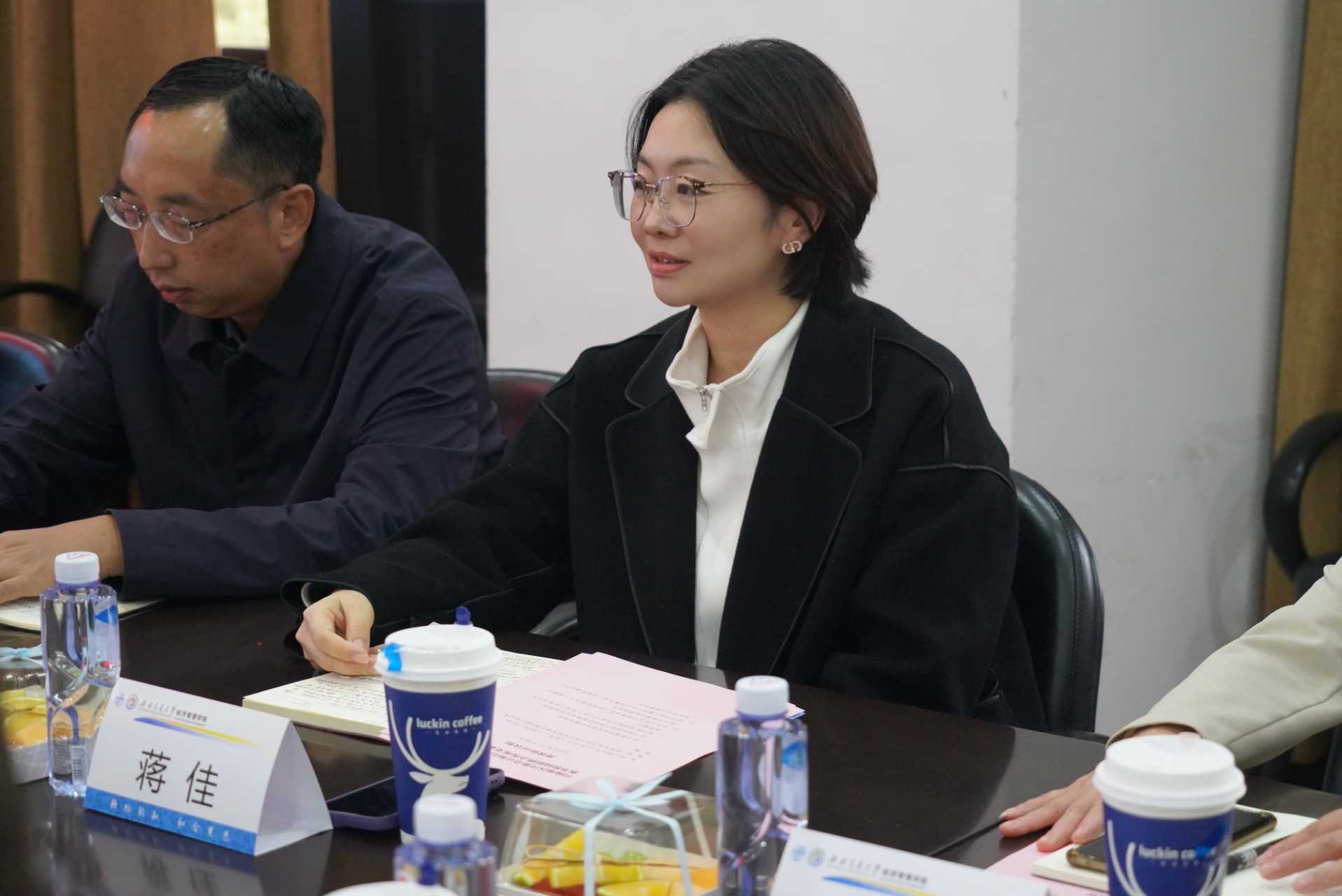 党委书记蒋佳在致辞中介绍了学院近年来的快速发展以及在学科建设、人才培养质量方面取得的显著提升,并强调学院高度重视学生就业工作,热切期盼在学生就业方面也能同步迈上新台阶。