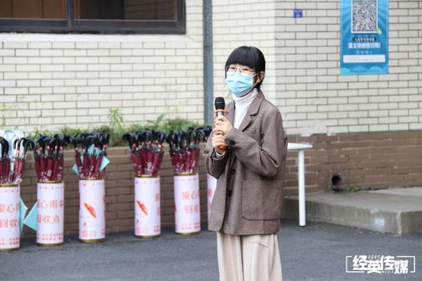 贾佳老师、陈建奇老师以及赞助商负责人都为此次活动进行了发言致辞。明确指出这次活动旨在解决同学老师们在雨天无伞可用的问题,并让同学们感受到爱心雨伞带来的便利与温暖。爱心雨伞深刻体现了“奉献、友爱、互助、和谐”的志愿者宗旨,传递着星星点点的暖意,构成校园里一道亮丽的风景线。同时,也温馨地提示了相关使用事项,呼吁同学们一起注意爱心雨伞的日常维护。