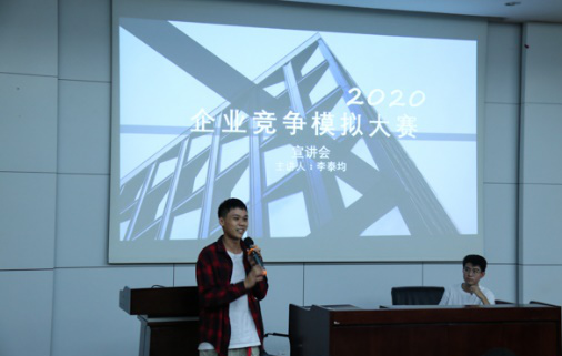 2020级本科生辅导员罗琴老师、创新创业中心主席黄思婕、经英传媒中心副主席姜润泽、第十八届全国MBA培养院校企业竞争模拟大赛国家级二等奖获得者李泰均以及2020年企业竞争模拟大赛(MBA组)国家级一等奖获得者黎曼仪。在宣讲会上,优秀选手李泰均和黎曼仪通过分享企模经验,对比赛进行了详尽的介绍,帮助同学们对企业竞争模拟大赛有了更加深入的认识,还给予了同学们相关的比赛经验支持,调动了同学们参赛热情的,也为培训会和比赛的顺利开展打下了坚实的基础。