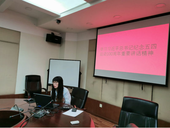 首先,贾佳老师带领大家学习习近平总书记纪念五四运动100周年重要讲话精神相关文件。大家一起讨论最近发生的国家大事,并发表自己的看法。