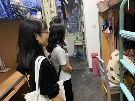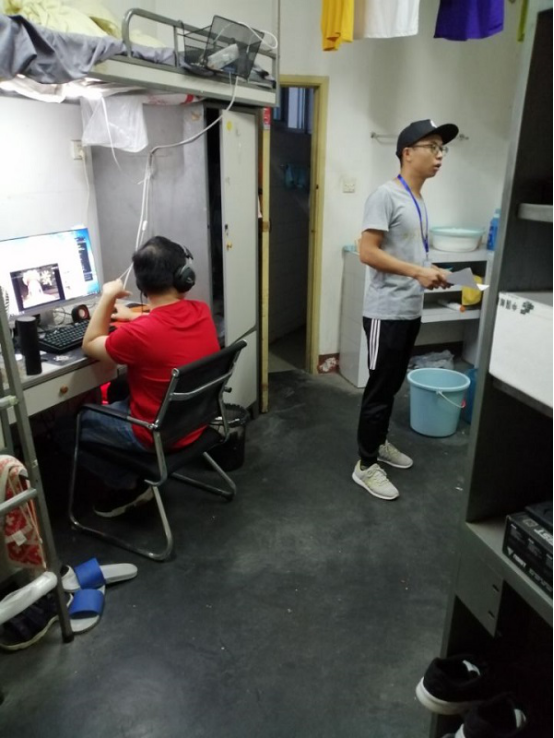 傍晚的秋雨让天空笼罩着一层灰蒙蒙薄纱,党员服务队的人员打着伞穿梭在眷诚斋和扬华斋的一幢幢楼之间,行走在一条条走廊之上,他们认真负责地执行着这次安全检查工作,对各个宿舍是否有违章电器做了仔细检查。整个检查工作进展顺利,各宿舍同学、宿舍管理员都积极配合。最后没有发现任何违禁物品,表明每个宿舍都做到了安全用电。