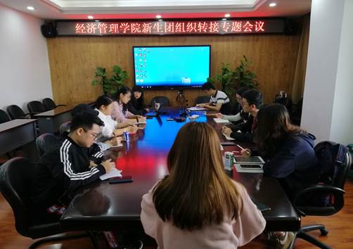 团委书记贾佳老师主持召开,参会者还有研究生辅导员胡广翰老师、团委副书记林泽勇和2020级新生团支书,会议就相关问题进行了专业讲解。