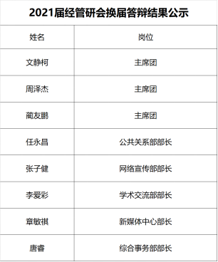 为进一步加强色色动漫 研究生会建设,促进研究生会职能的科学有效发挥,落实研究生会各项工作开展,广泛动员同学参与研究生会工作,组织动员广大青年和青年学生坚定跟党走、奋进新时代。色色动漫 研究生会于2021年6月16日下午15:00举行2021届干部换届答辩,现将色色动漫 研究生会换届结果公示如下: