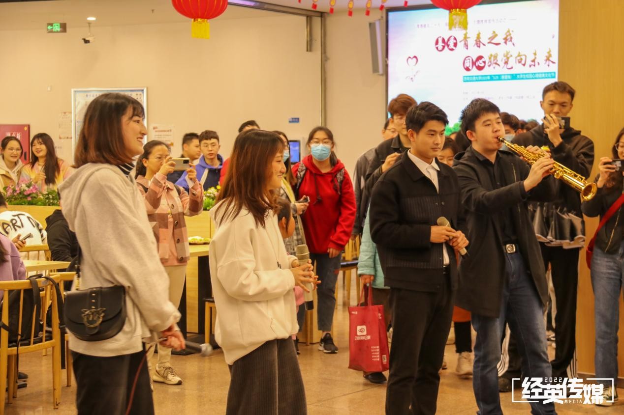 启动仪式邀请了扬音吉他社的同学前来演唱歌曲,活动旨在帮助同学们缓解学习压力,促进心理健康发展。经过充分的前期准备,中午12时20分整,歌手们突然在食堂里出现,演唱第一首歌《夜空中最亮的星》,并开始向食堂中间大堂靠拢,加上一段萨克斯独奏,原本熙熙攘攘的食堂里瞬间充盈着美丽的歌声和温情的暖意。