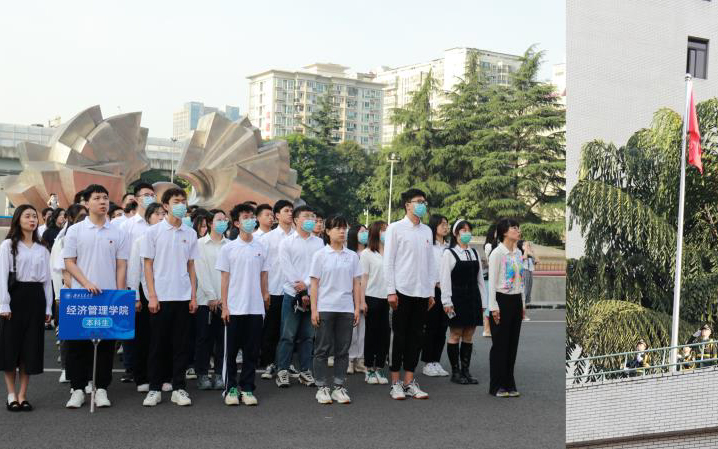 团委组织100名师生在九里校区零号教学楼国旗台观看升旗仪式,致敬峥嵘岁月,献礼建团百年。