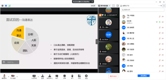 学生工作组副组长贾佳和本科2021级辅导员、就业生涯导师张先凌为主讲人,2023届毕业生全部参与其中。