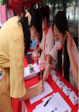 和父母挥手告别,体温测试、扫码、刷卡、消杀……萌新们满怀着理想和憧憬,踏入郁郁葱葱的校园。等候已久的志愿者们和工作人员也开始忙碌起来。在完成消杀环节之后,新生们坐上校园摆渡车,穿过林荫大道,来到校园迎新处。学校在迎新处为新生们搭建了新生咨询台,并设置了签名墙、合影墙等供新生们合影留念。
