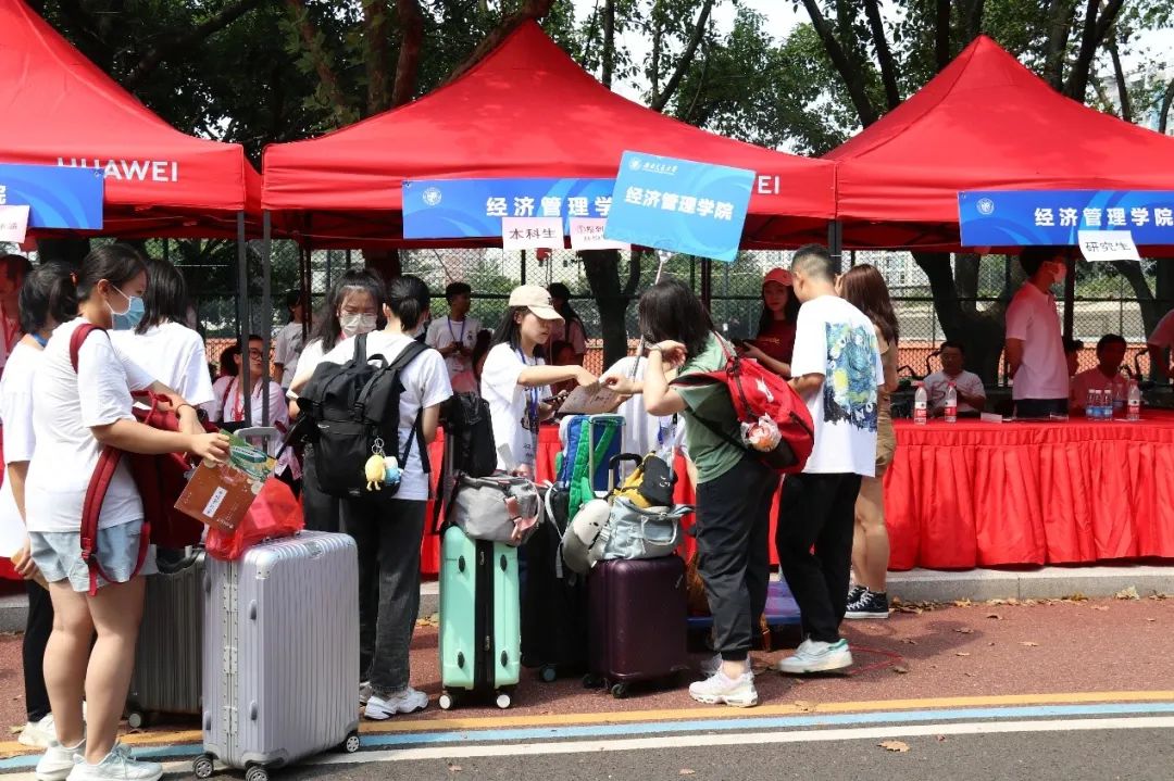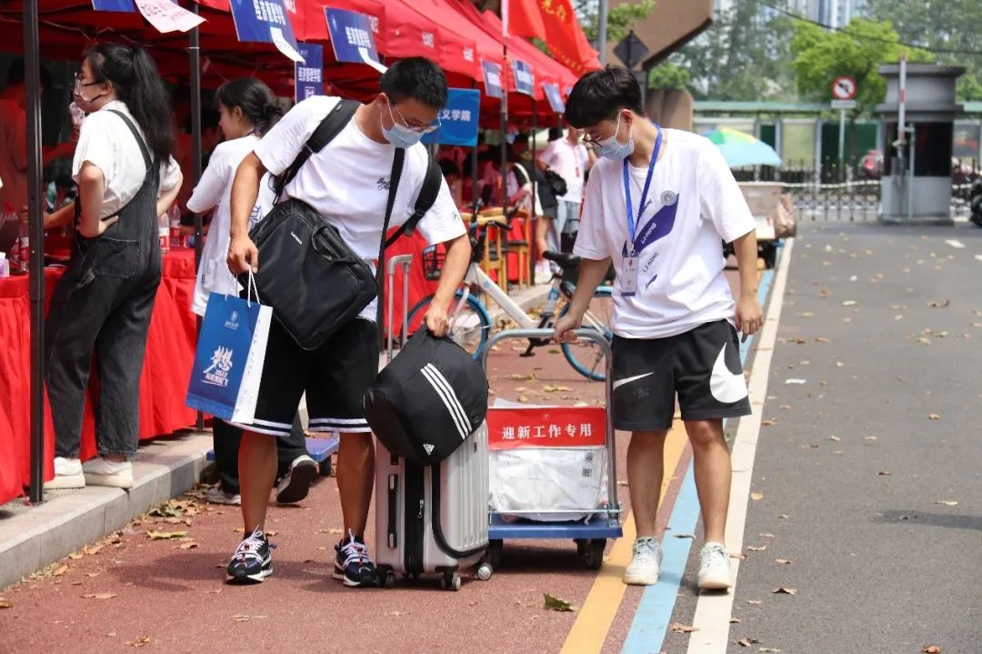 热浪袭人,却比不过志愿者的热心。从校门到迎新点,一位位无名的志愿者正在辛勤地工作着,搬运行李,指引道路,答疑解惑。这一刻,远行学子的心已与学院的大家融为一体,心已定,怎不继续前行!