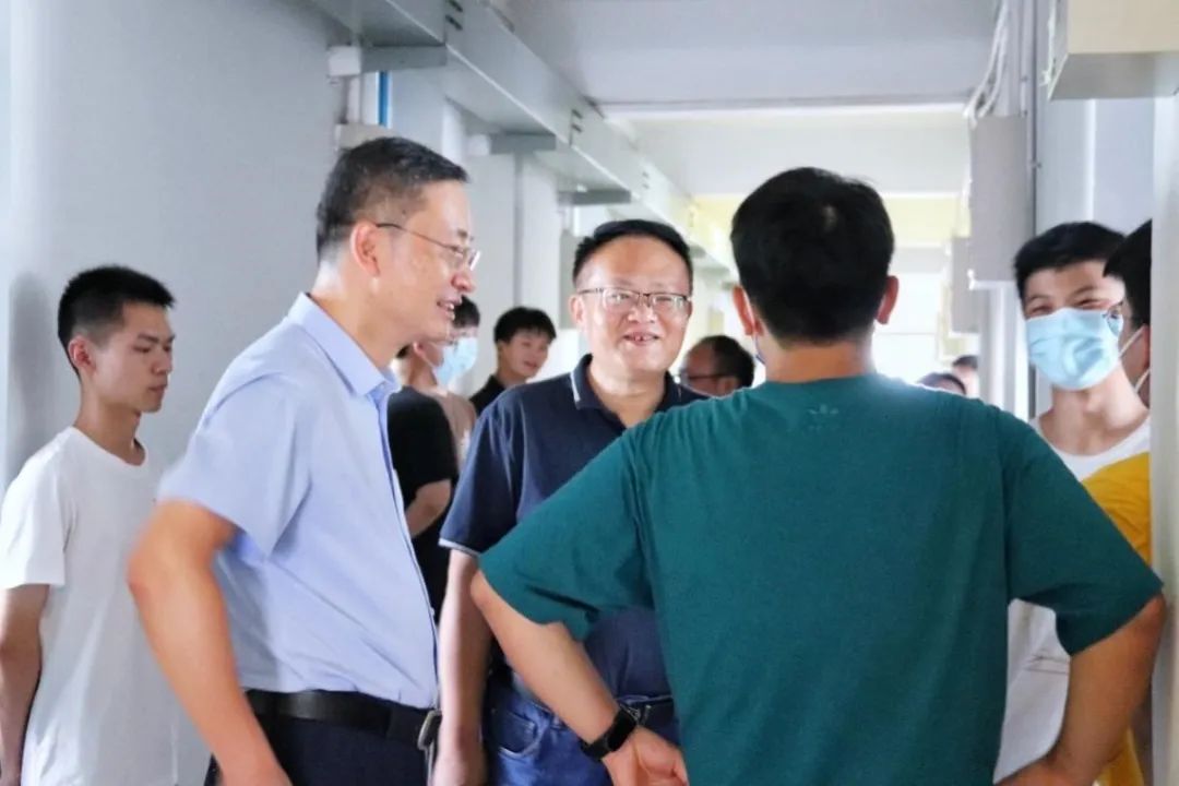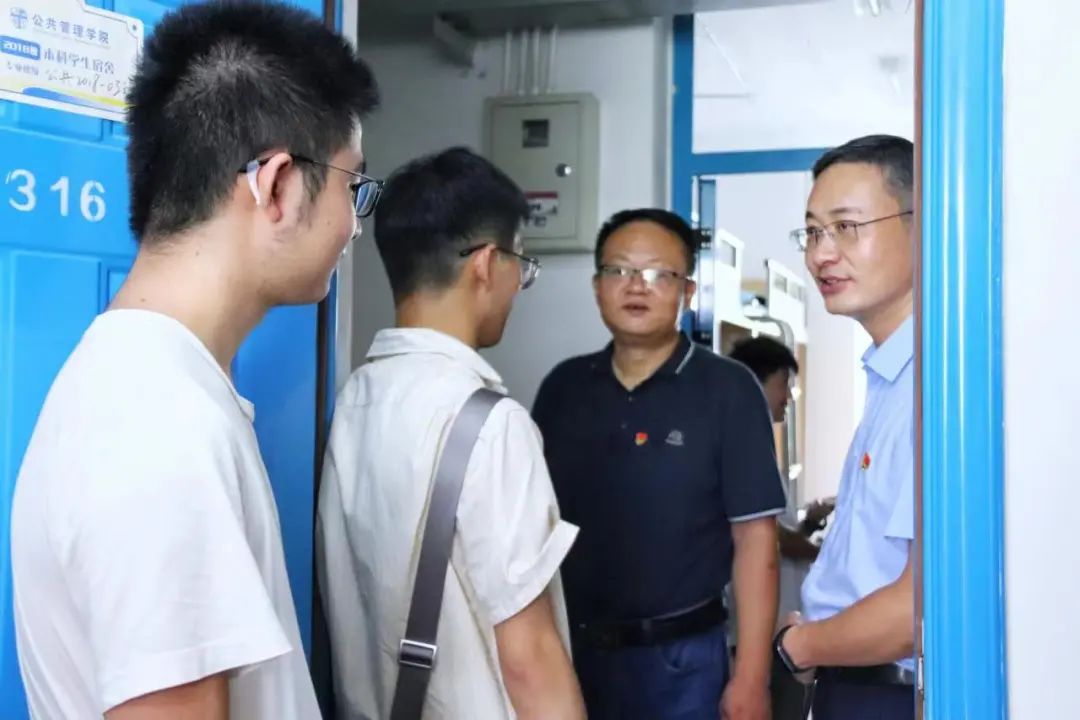 8月25日上午,校党委副书记杨爱华、学院党委书记王斌和执行院长郭强以及学校相关机关部处领导一行人到迎新工作现场走访慰问,就新生的报到情况、住宿条件等进行了询问,浓浓关怀溢于言表。