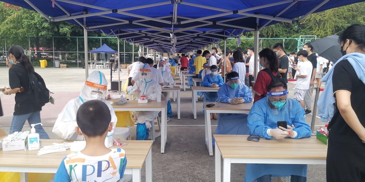 下午3时,学院12名党员志愿者老师在王斌、杨宏毅的带领下来到核酸检测现场。党委学生工作部李毅副部长统一分派工作后,志愿者们先做好自我防护,再有序来到分派岗位进行志愿服务工作。