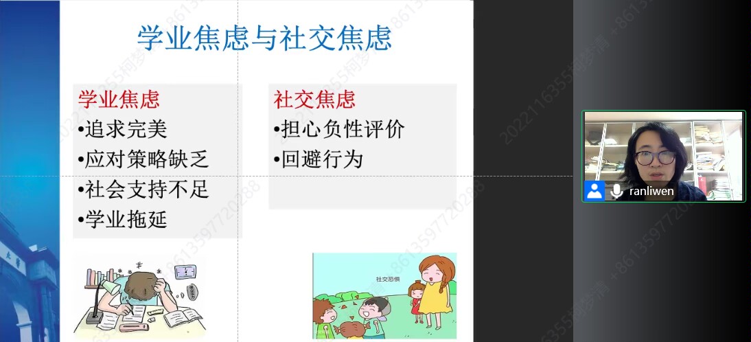 首先,心理研究与咨询中心冉俐雯向家长们介绍了如今大学生心理健康现状以及抑郁症、焦虑症等常见的心理障碍,让家长们对大学生的心理健康有了更清晰的认知,随后又提出了心理危机的预防策略。通过冉老师的发言,家长们了解到色色动漫