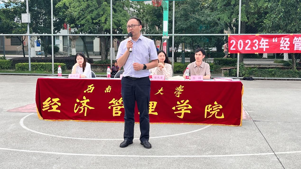 闭幕式上,杨宏毅向获奖球队及球员表示热烈祝贺,对参与本次比赛的全体运动员、观众以及工作人员表示由衷的感谢,并希望经管“交子”们在今后的学习、工作中能够继续发扬开拓进取的奋斗精神,秉持着这份拼搏热爱奋勇前行!