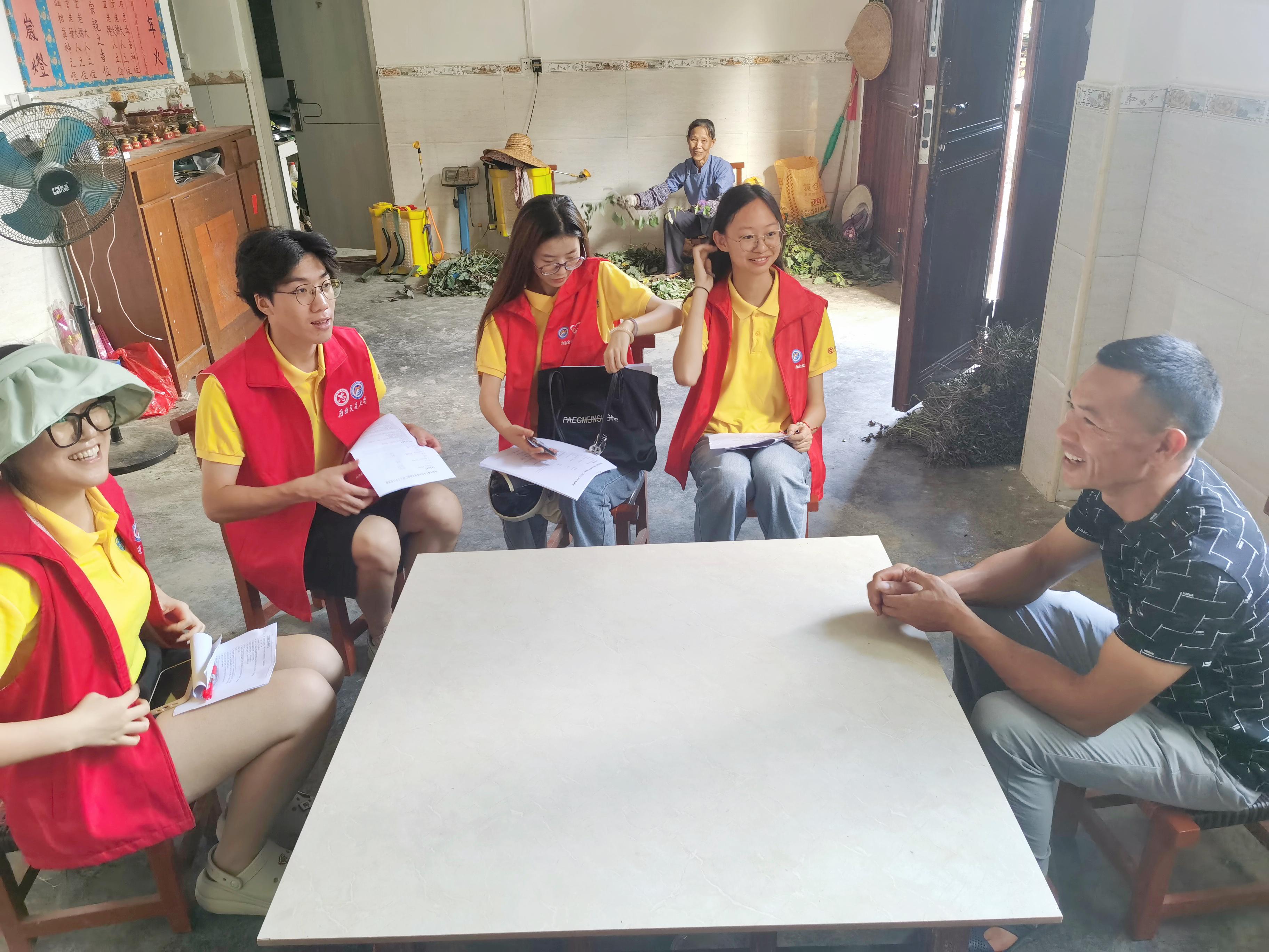 交流结束后,实践队访谈了百坭村驻村第一书记农俊海。访谈了解到,在经济发展方面,百坭村响应自治区号召,鼓励各民族共同参与农业合作社等经济组织,集体种植油茶、砂糖桔等经济作物,增加村民收入来源;在文化交流方面,村里经常举办各类民族文艺演出,各族村民共同参与民族特色活动,如壮族传统节日“三月三”、“卜隆古歌节”等,传承民族文化,加强各民族间了解和融合;在教育领域,当地所有民族的学生平等接受教育,通过课堂根植爱国主义思想和民族团结意识,推行国家通用语言文字教育,增强“四个认同”,从而保持社会面稳定和民族团结。