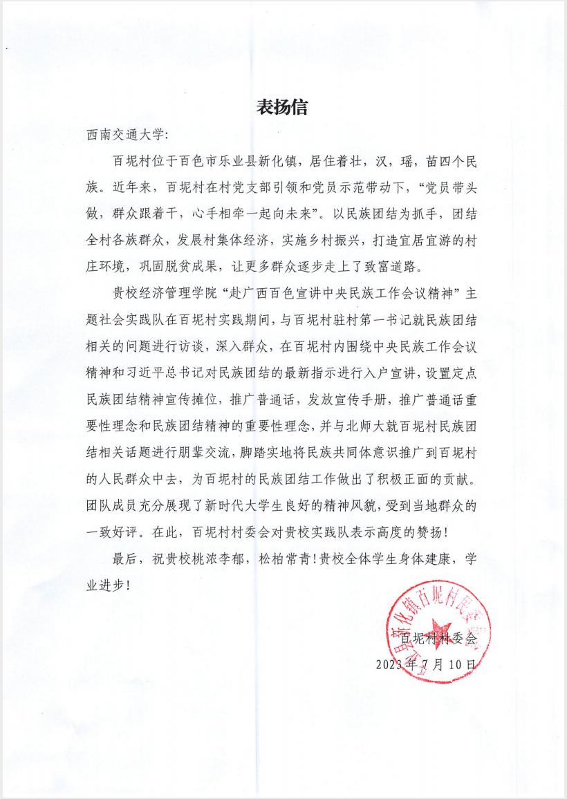 实践队也希望通过此次活动为中华民族伟大复兴贡献西南交大力量、奉献交大青年智慧,和全国各族人民一道团结奋斗,最终汇聚成强国建设、民族复兴的磅礴伟力。