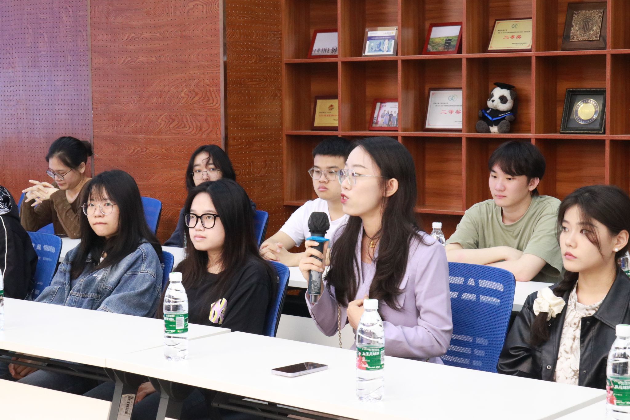 在自由座谈交流环节,本科2020级毕业生代表首先逐一介绍自身情况以及目前面临的就业问题。同学们提到了专业对口性不强、人才市场竞争激烈、家庭期望与就业大环境存在矛盾以及对学校第二学士学位办学情况的困惑等问题,希望老师们提供建议和帮助。