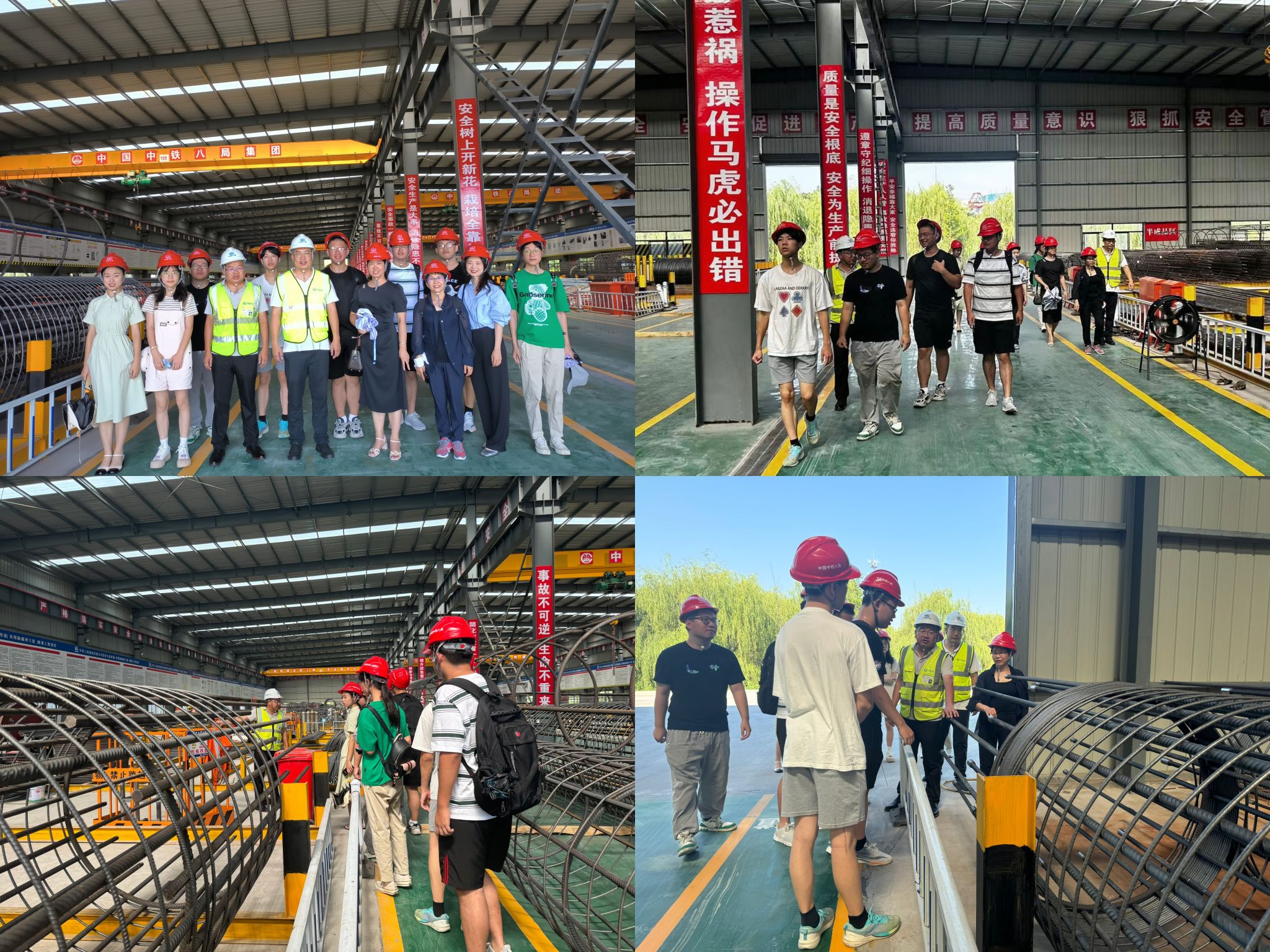 7月22日上午,学院师生前往中铁八局政和大道西延(凤翔路-惠洲大道)新建工程项目部参观钢筋加工厂和施工现场。项目书记张晓东和副经理罗贤辉向师生介绍了钢筋铸造、地基打造过程。生产和建造现场井然有序,工人们在烈日炎炎下挥洒汗水,师生近距离观察了现代化施工设备的高效运作。这一场景让学生们深刻感受到了国家基础设施建设的雄伟与艰辛,激发了他们投身国家建设、服务社会的责任感和使命感。