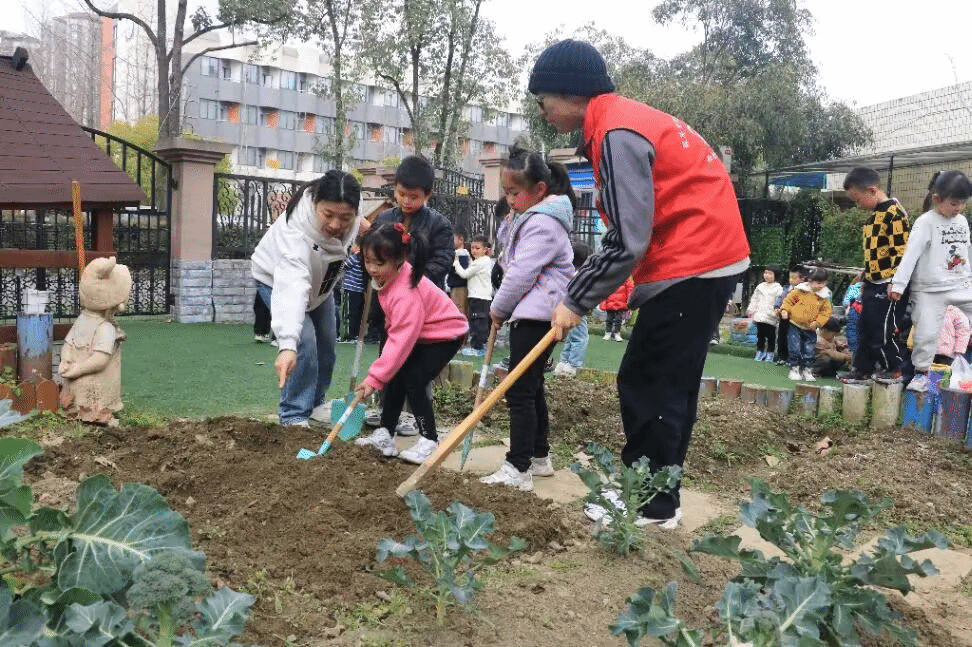 活动当天,志愿者们早早抵达幼儿园,与老师们一同精心布置活动场地,准备好各类种子以及适合儿童使用的小铁铲、喷壶等种植工具。下午2点30分,活动正式拉开帷幕。在志愿者和老师的带领下,孩子们分组有序行动。他们手持小铲子,小心翼翼地挖坑、栽种、填土,然后认真地给种子浇上“生命之水”。尽管小手沾满泥土,但孩子们的脸上洋溢着纯真的笑容。