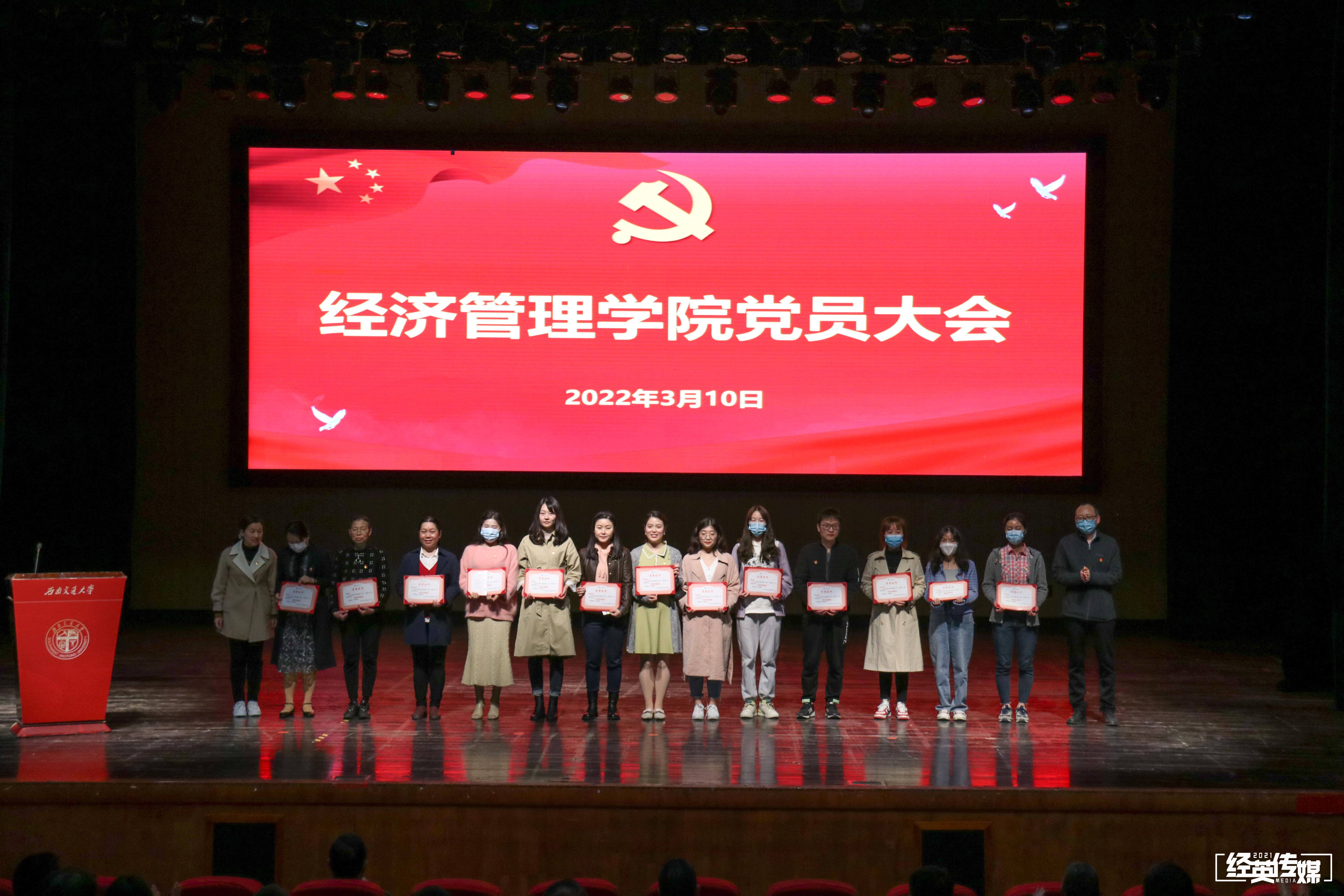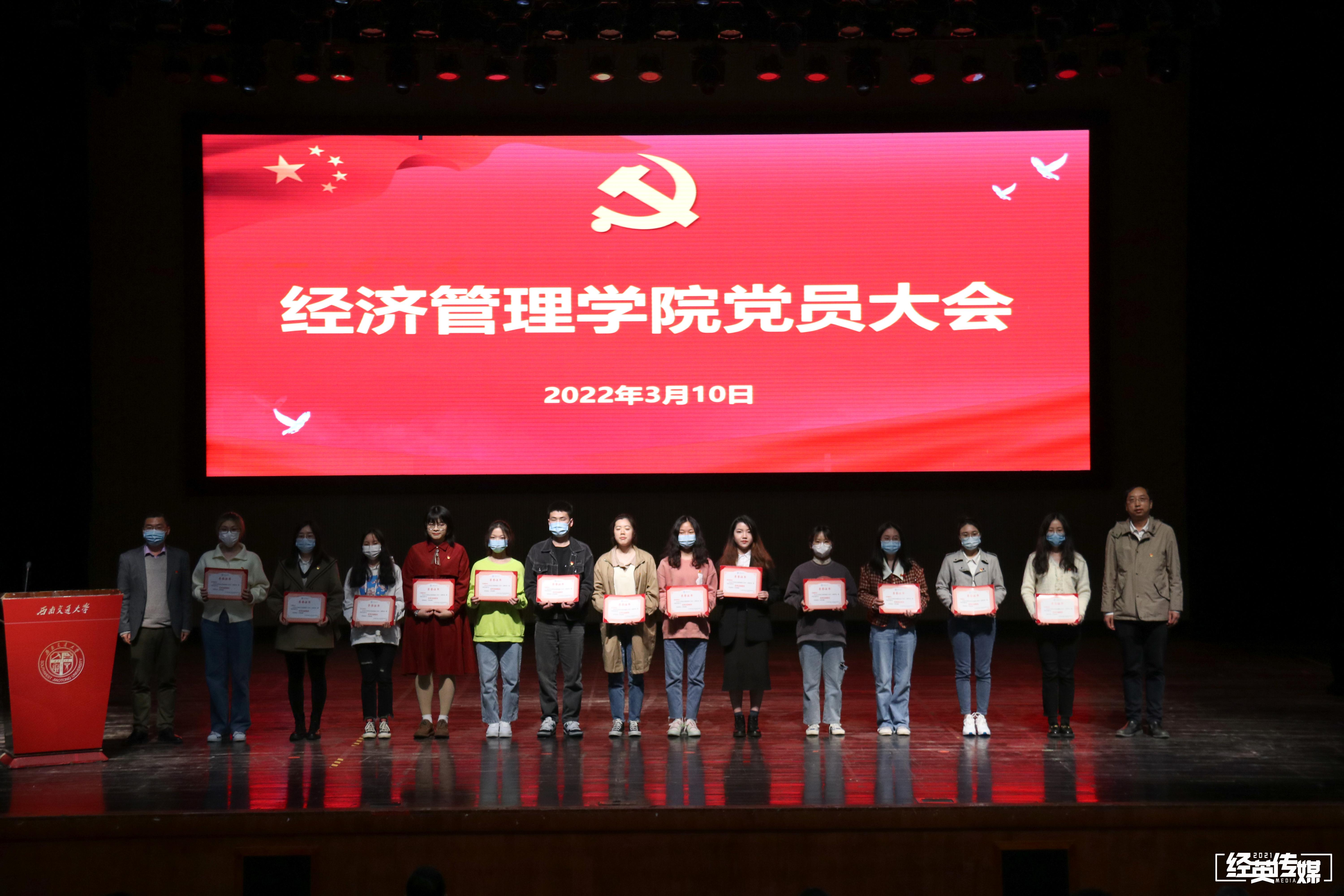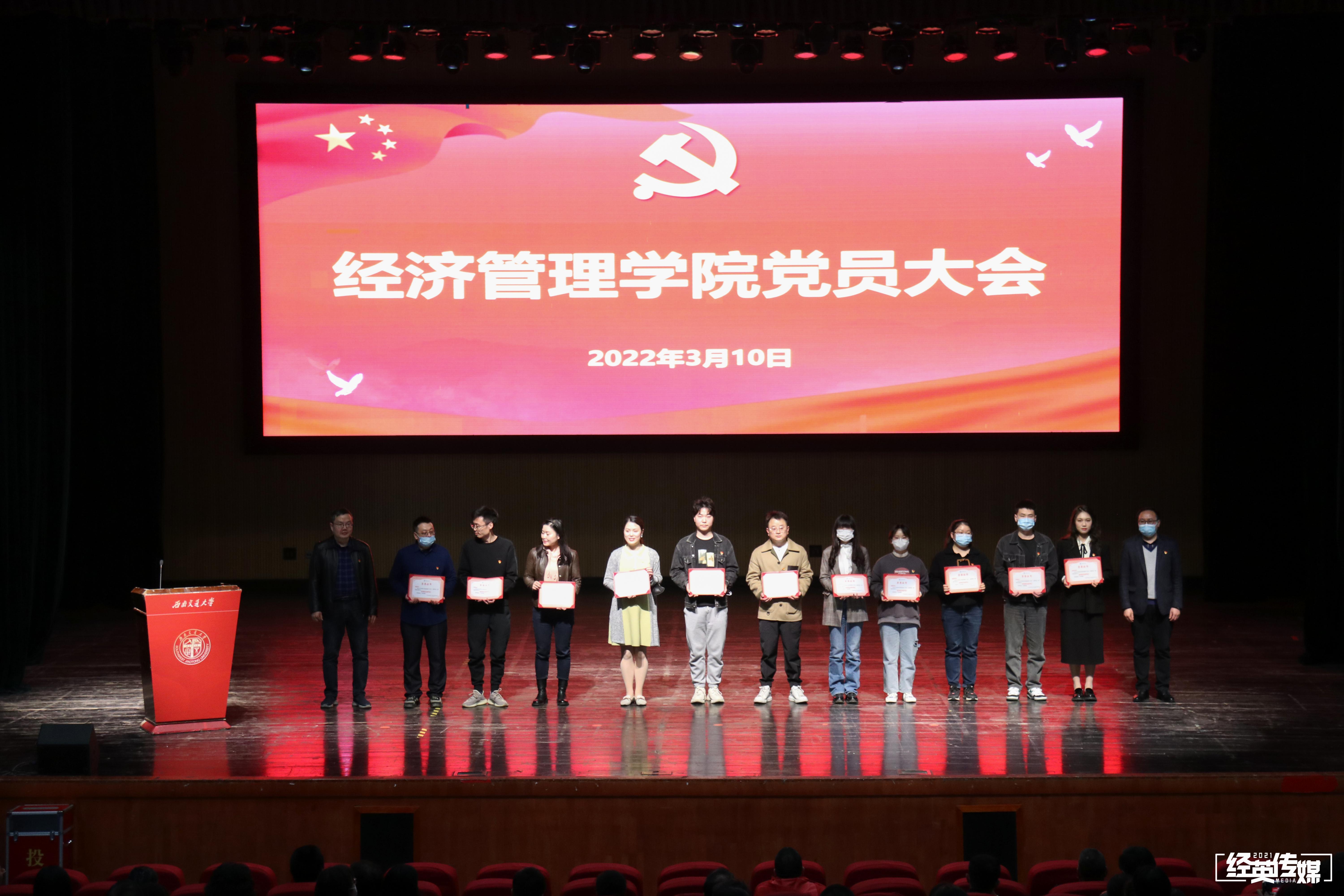 2021年度党建工作先进集体和优秀个人的表彰。为了进一步加强学院党建工作,学院党委对各党支部2021年度党建工作进行了考核,并评选出12个先进党支部、11名优秀党支部书记和26名优秀党支部委员。学院党委书记王斌,执行院长郭强,党委副书记夏显波、杨宏毅,副院长周嘉南、李良、聂佳佳和党委委员叶勇老师分别为受到表彰的先进集体和优秀个人颁发了证书。