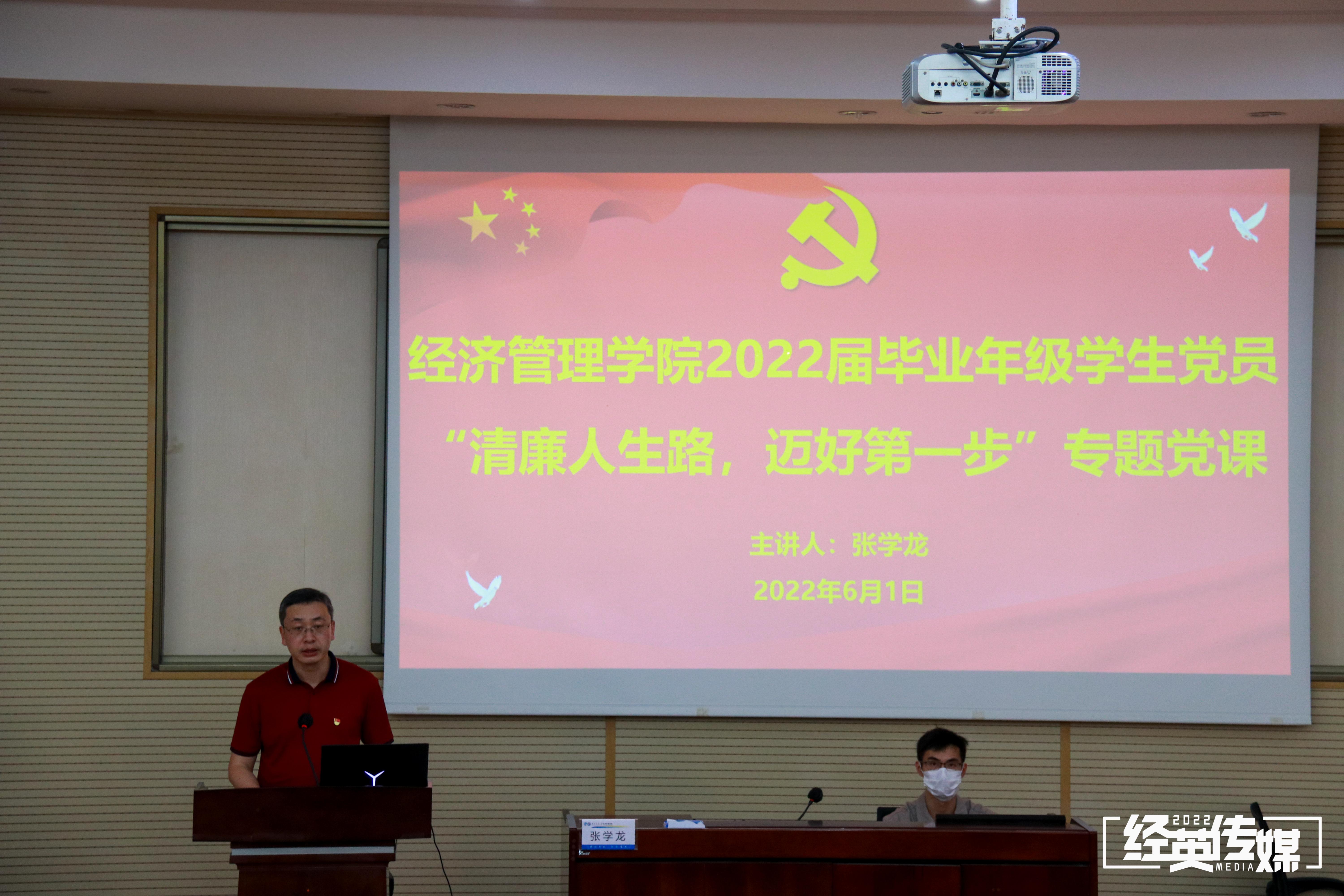 党委邀请学校党委副书记、纪委书记张学龙在九里校区0202教室为学院2022届毕业年级学生党员讲授“清廉人生路,迈好第一步”专题党课。党课由学院党委书记王斌主持,学院党委副书记夏显波、杨宏毅,学生工作组全体辅导员及毕业年级学生党员参加了党课学习。