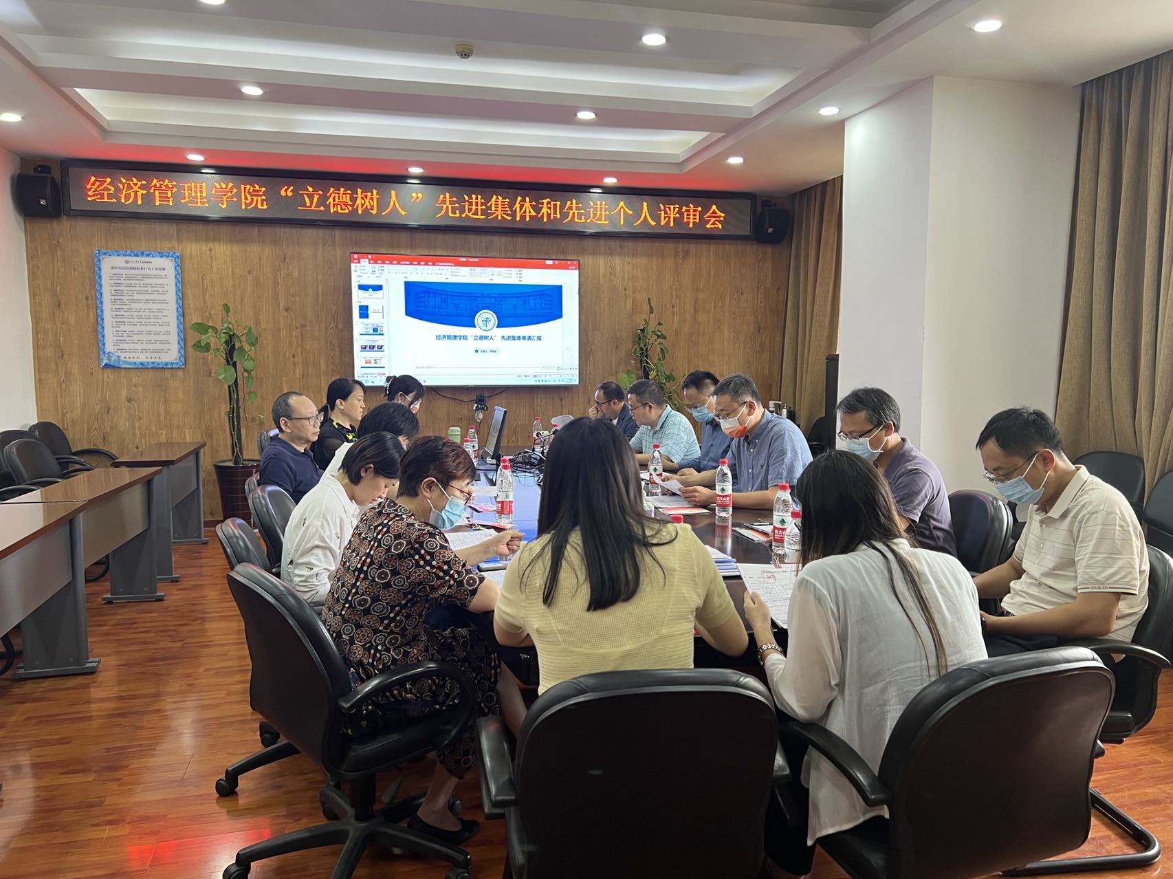 首届评奖自2022年5月启动以来,学院有2个集体申报了“科研育人”先进集体评选、3个集体申报了“管理与服务”先进集体评选、5名老师申报了“教书育人”先进个人评选、3名老师申报了“科研育人”先进个人评选、2名老师申报了“管理育人”先进个人评选、2名老师申报了“服务育人”先进个人评选。9月20日下午4点,学院首届“立德树人”先进集体、先进个人评奖答辩在九里校区0607会议室举行。答辩会由学院党委书记王斌主持,评审委员由学院党政领导班子成员、党委委员、教师代表和机关工作人员代表组成。