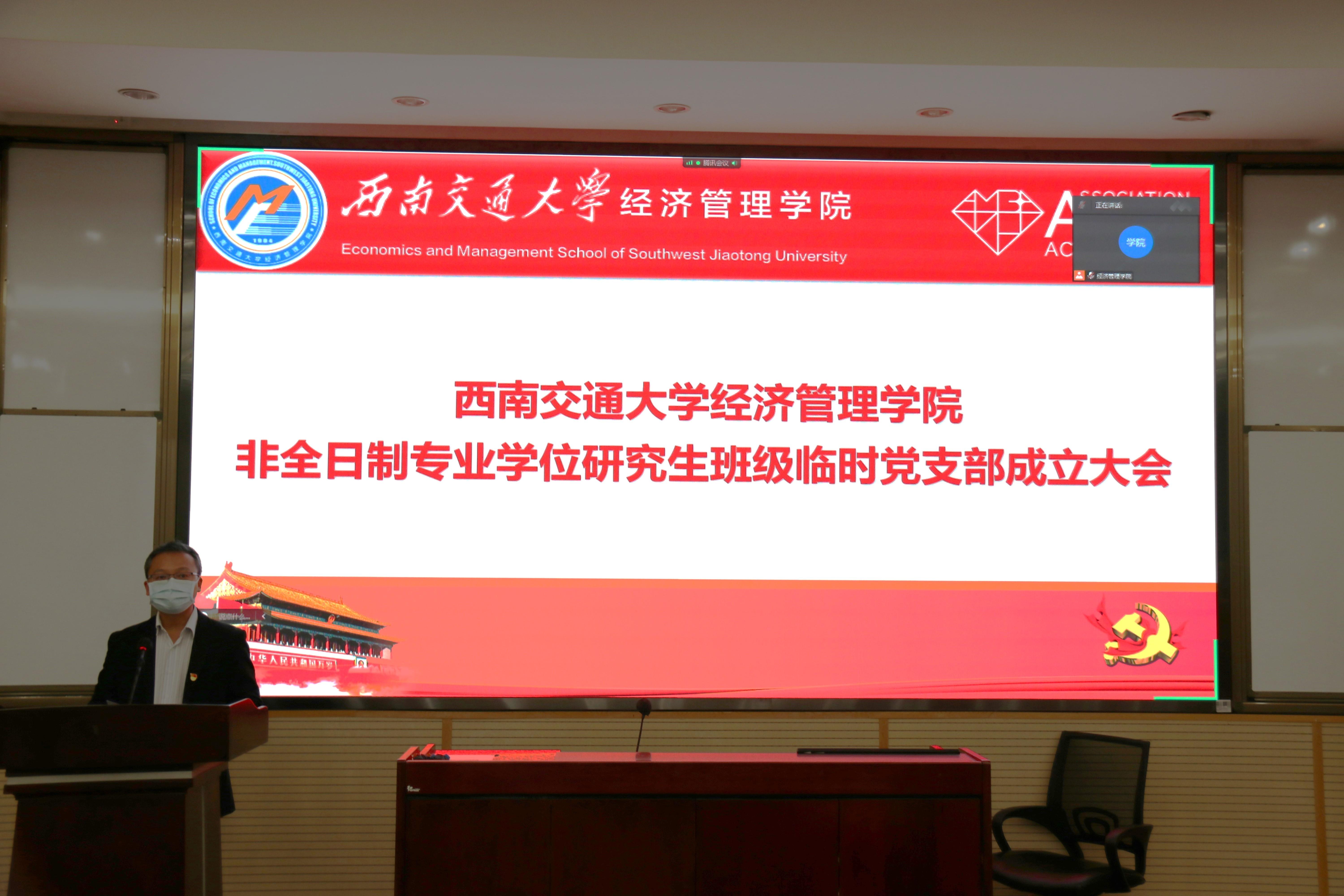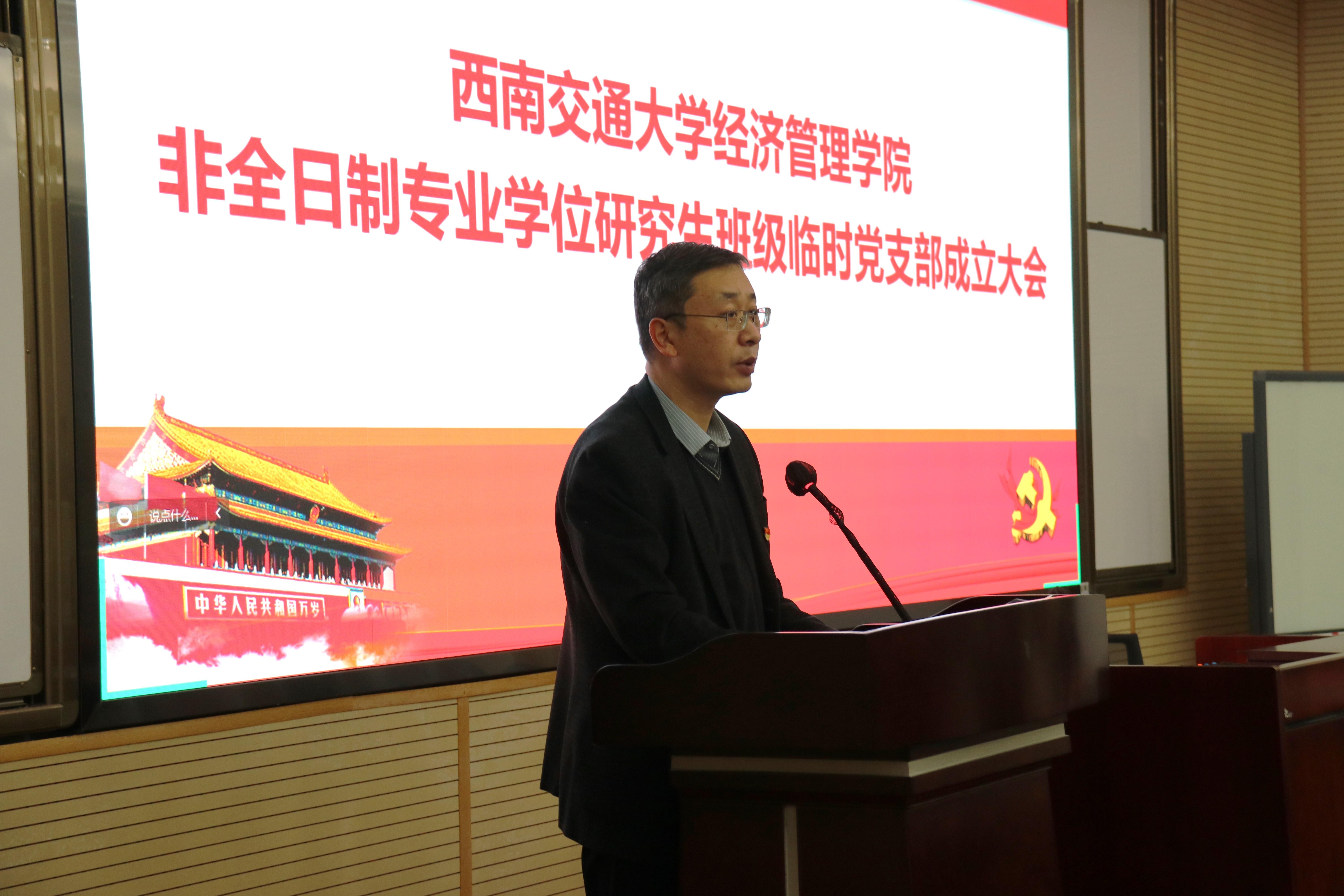 党委书记王斌代表学院党委宣布了首批17个非全日制专业学位研究生班级临时党支部的设置名单,介绍了临时党支部的使命和要求,并强调,各临时党支部,尤其是党支部书记、委员,要严格要求,恪尽职守,履职尽责,发挥好党支部的组织作用和政治保障功能,一是要组织和带领所在班级非全日制专业学位研究生同学深入学习党的理论、方针、政策,深入学习领会和贯彻落实党的二十大精神;二是要为非全日制专业学位研究生同学搭建更多互动平台,组织各种卓有成效的党建活动,将同学们的课堂学习和课后交流实践以及大家的成长发展紧密结合起来;三是锻造我校非全日制专业学位项目办学特色,力争打造更有站位、更高价值的,具有西南交大色色动漫
