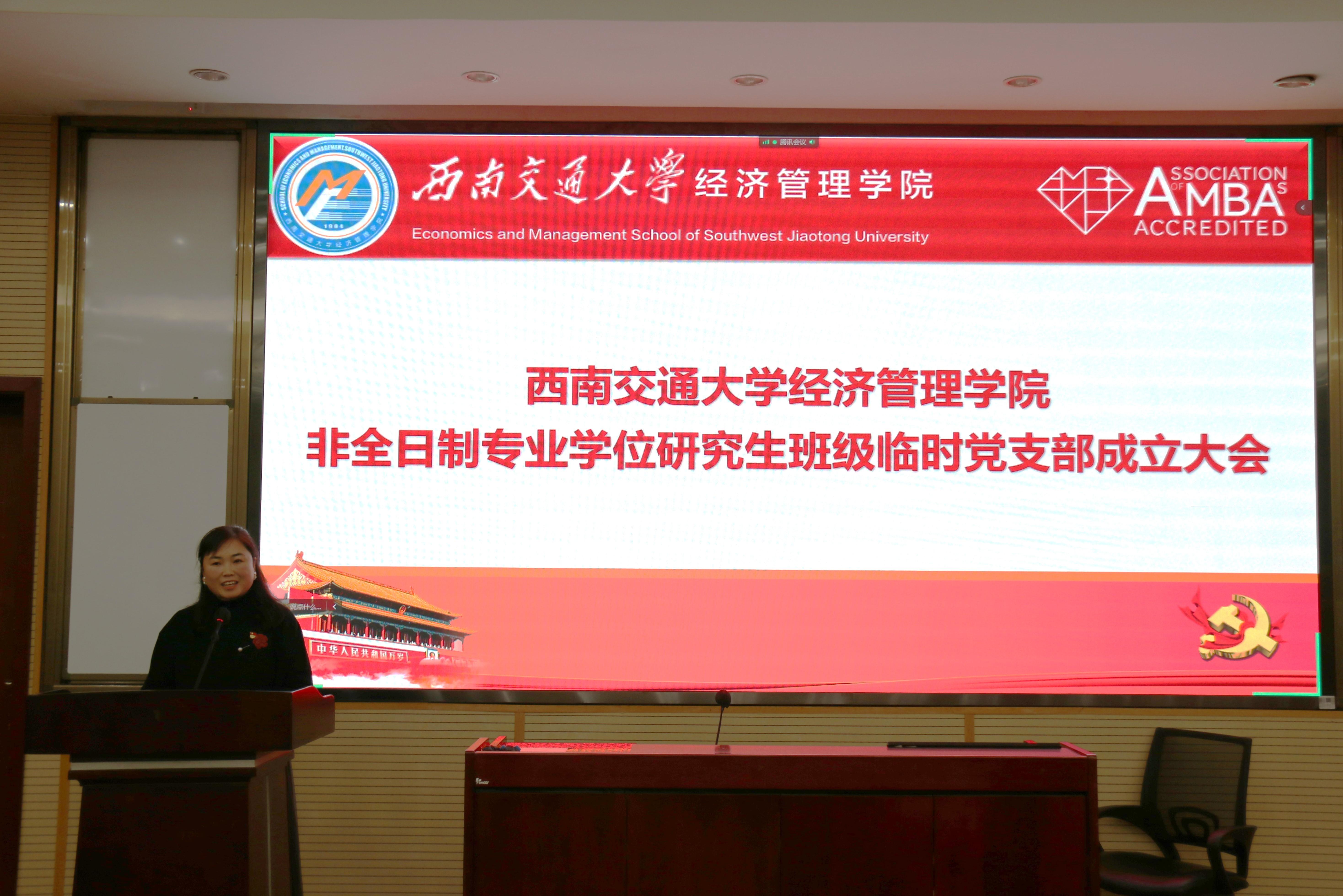 党委书记王斌,学院党委委员、执行院长郭强,学院党委副书记、纪委书记夏显波,学院党委副书记杨宏毅,学院专业学位教育中心主任李海波、副主任诸波,专业学位教育中心办公室主任陈静,2021级MBA班主任滕倩,2022级MBA班主任向洪信,2022级EMBA班主任黄金玲、宋洁,2021级、2022级MEM班主任姚霁芸以及2021级、2022级各非全日制专业学位研究生班级临时党支部党员代表参加了此次大会。成立大会由学院专业学位教育中心副主任何鹏主持。