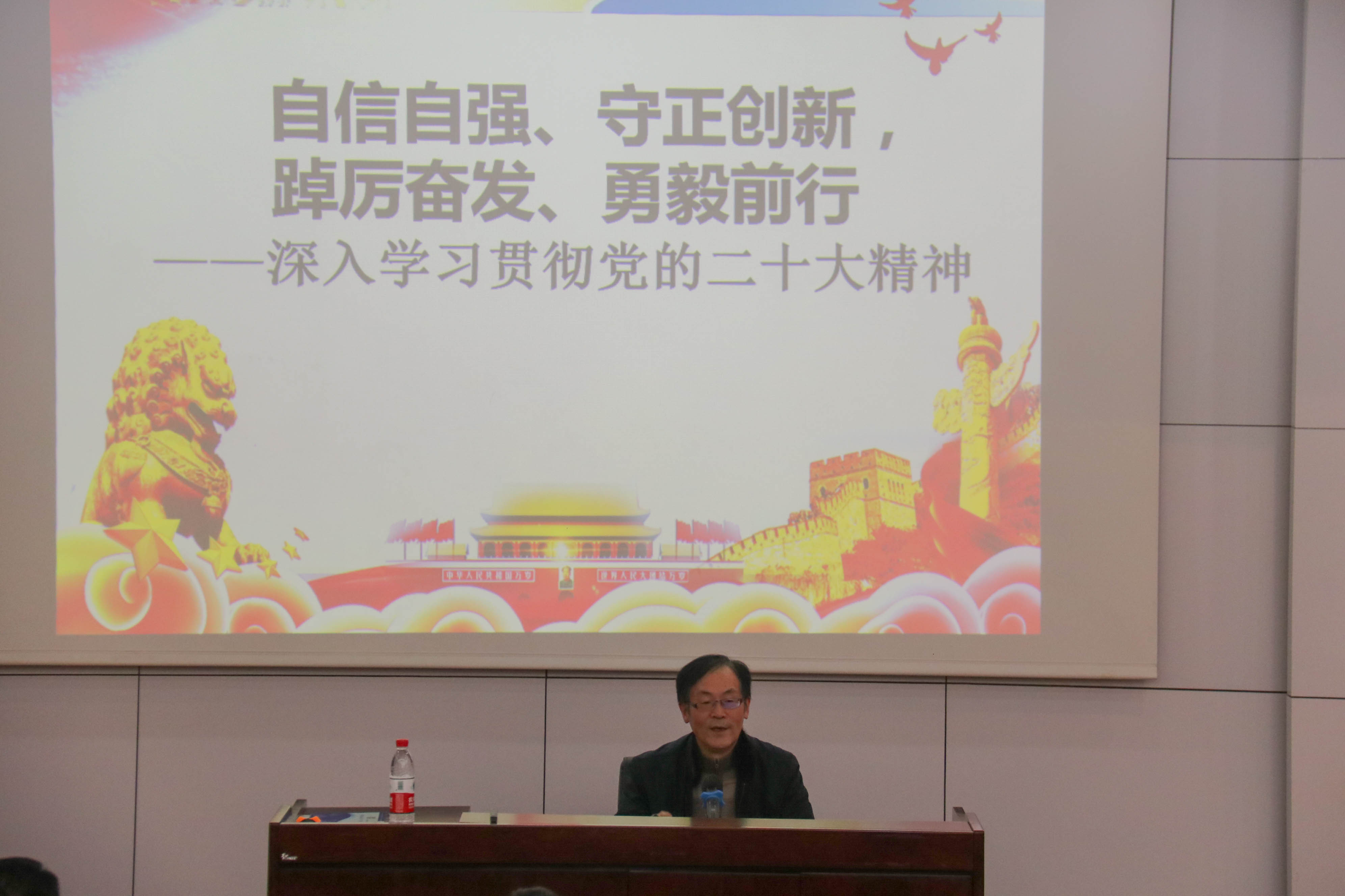 宣讲团专家组成员刘占祥教授作了题为“自信自强、守正创新、踔厉奋发、勇毅前行——深入学习贯彻党的二十大精神”的专题辅导报告,学院党政领导班子、师生各党支部委员、党外知识分子、机关工作人员共100余人参加了报告会。报告会由学院党委书记王斌主持。