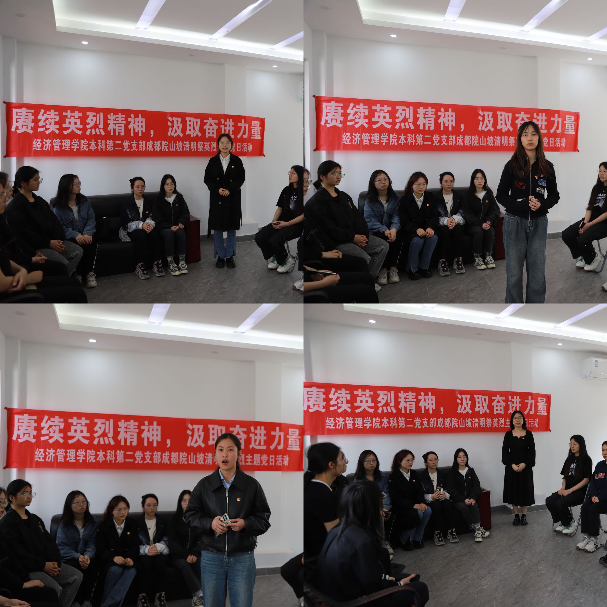 本科第二党支部组织党员和入党积极分子前往成都市院山坡烈士陵园开展“赓续英烈精神,汲取奋进力量”清明祭英烈主题党日活动。