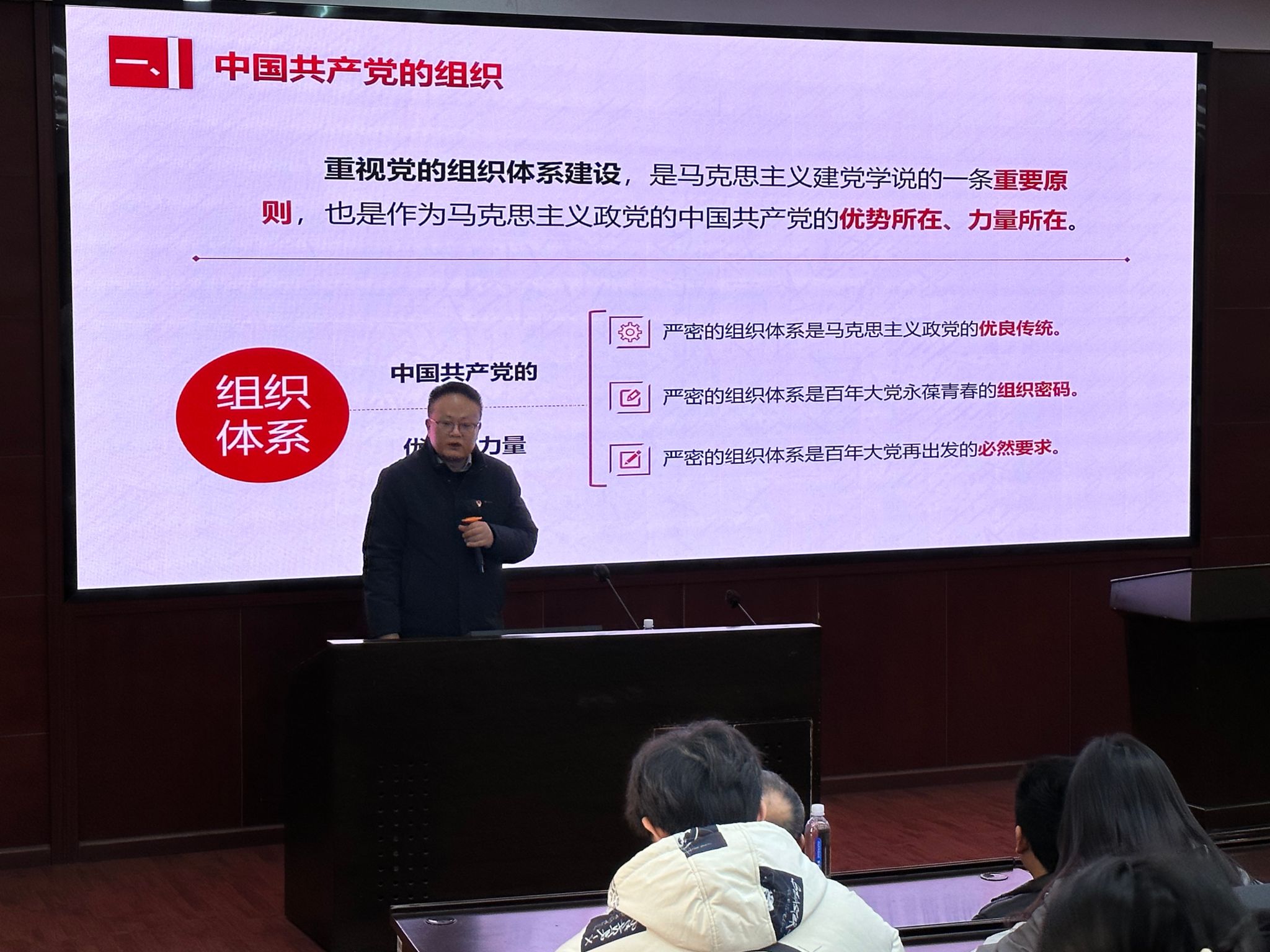 本次专题党课的主题是“筑坚固堡垒,扬优良作风”,郭强从党的根本组织原则、党的组织体系特点、党组织的结构任务三个方面进行了深入浅出的讲解。通过学习,与会人员对抓好党的组织制度建设的重要性有了更深刻的理解,纷纷表示要在今后的工作中认真贯彻落实新时代党的组织路线,抓好党的组织制度建设,不断提高党的组织建设的制度化、规范化、科学化水平。
