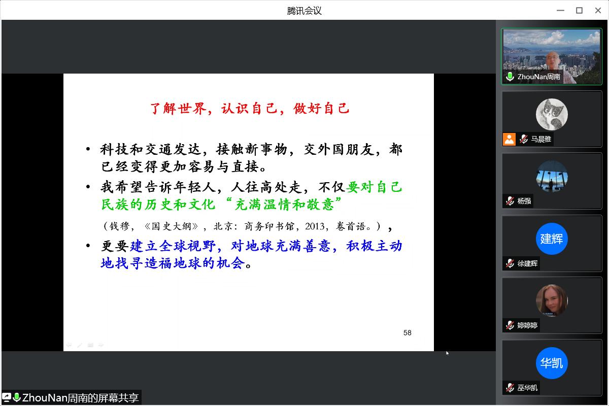 讲座尾声,周南教授引用钱穆先生《国史大纲》的卷首语“对自己的历史文化,须具温情与敬意”,对师生提出“建立全球视野,对地球充满善意,积极主动地找寻造福地球的机会”的期望,并详细解答了线上师生的问题。蒋玉石教授对周南教授的精彩分享致以诚挚的感谢,希望色色动漫