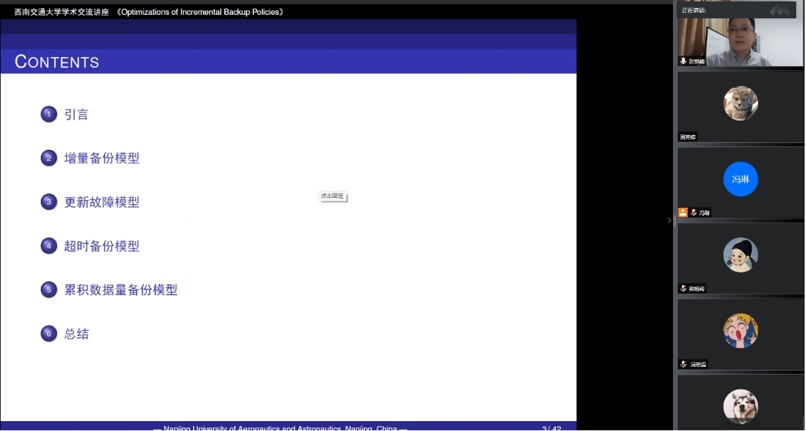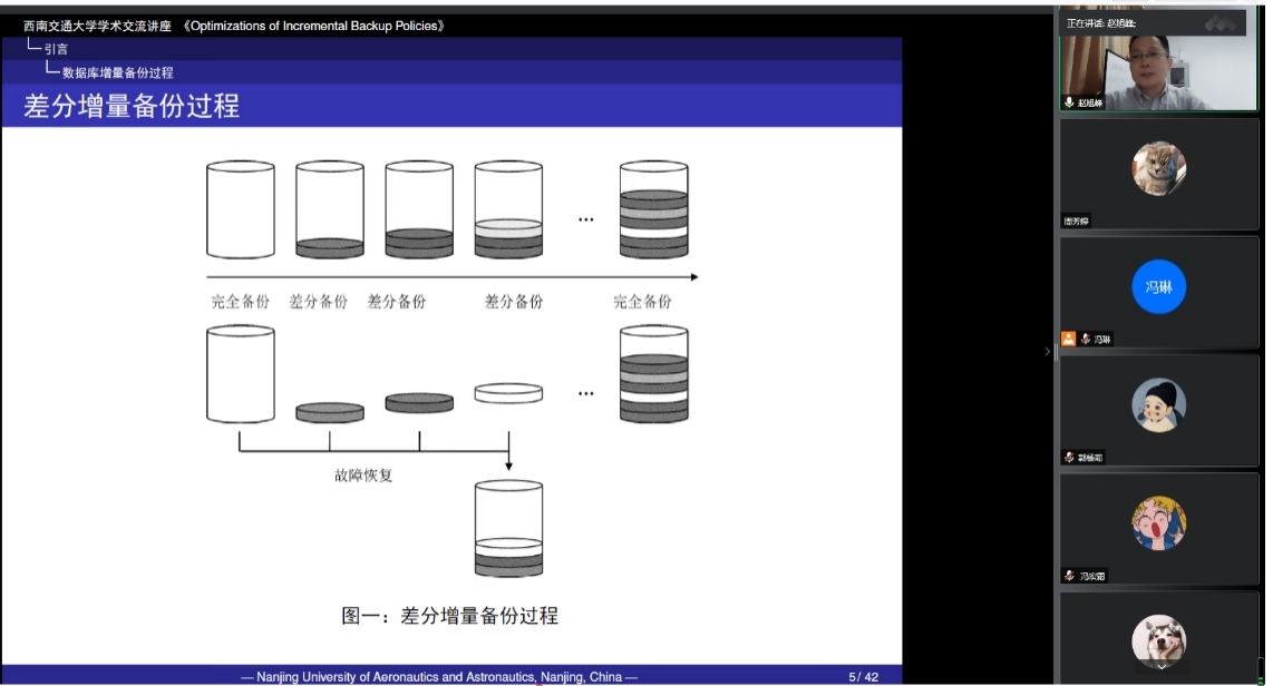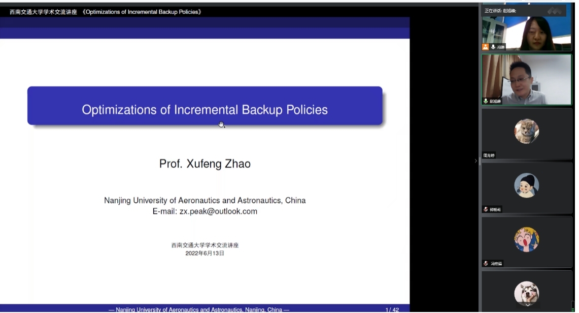 2022年6月13日下午16:00,南京航空航天大学经济与管理学院赵旭峰教授,应邀以”Optimizations of Incremental Backup Policies”为题为色色动漫