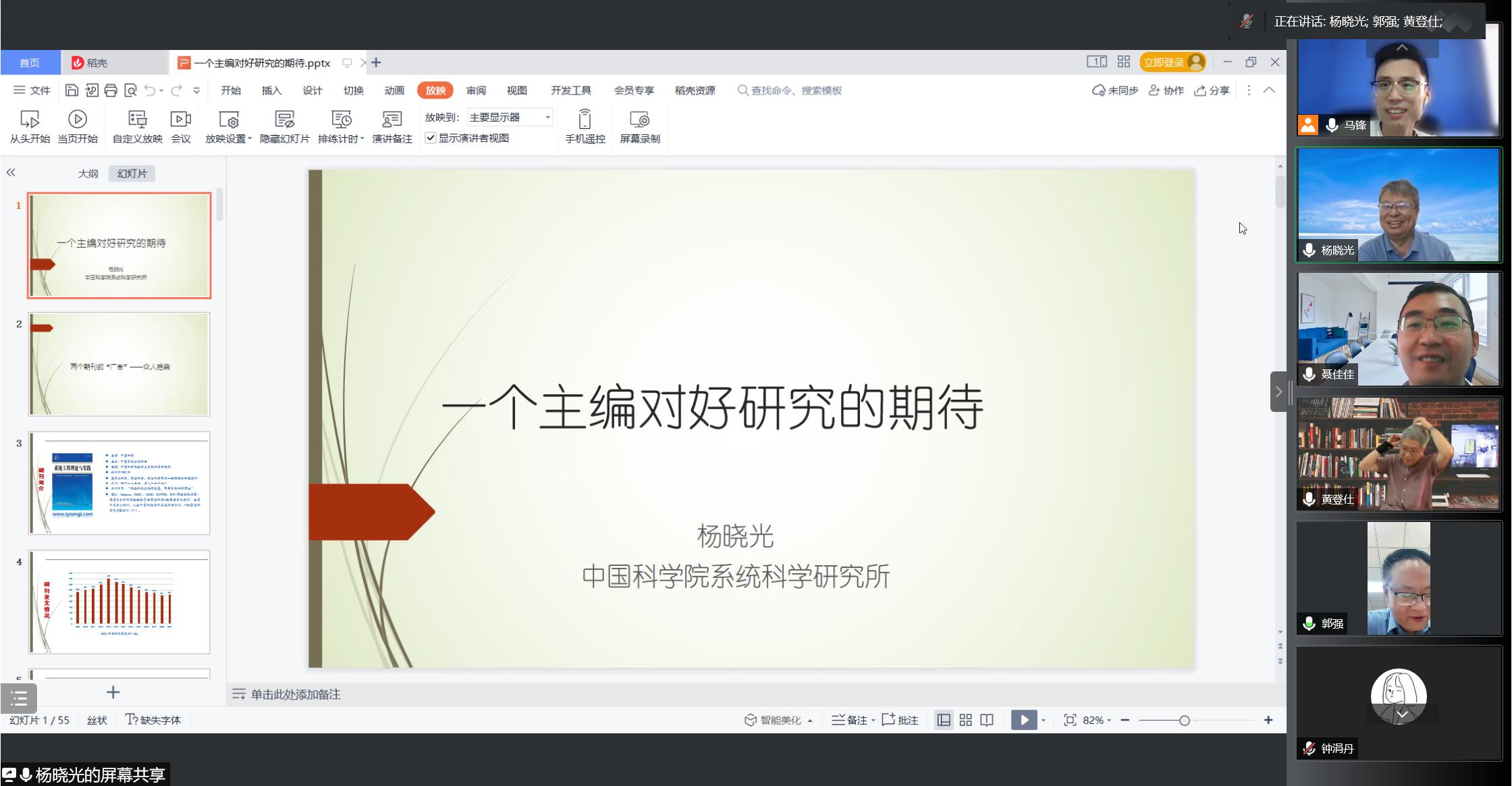 讲座分享中,杨晓光研究员简要介绍了《系统工程理论与实践》和《系统科学与数学》两本期刊近年来的论文收录统计情况、主要成就和期刊审稿流程。