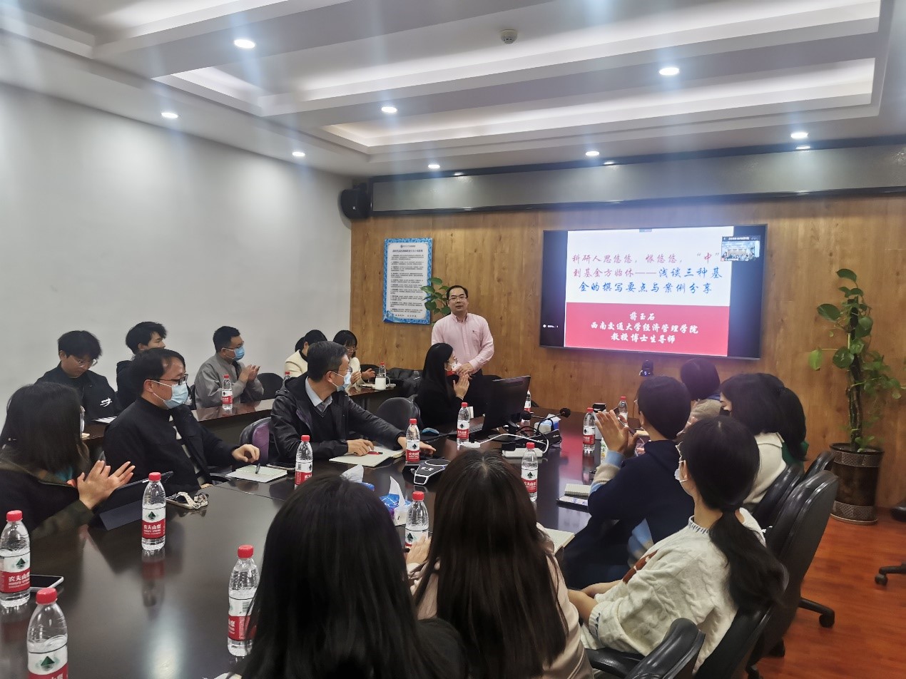 市场学系蒋玉石教授分享了申报教育部人文社科基金、国家社会科学基金和国家自然科学基金项目的经验。