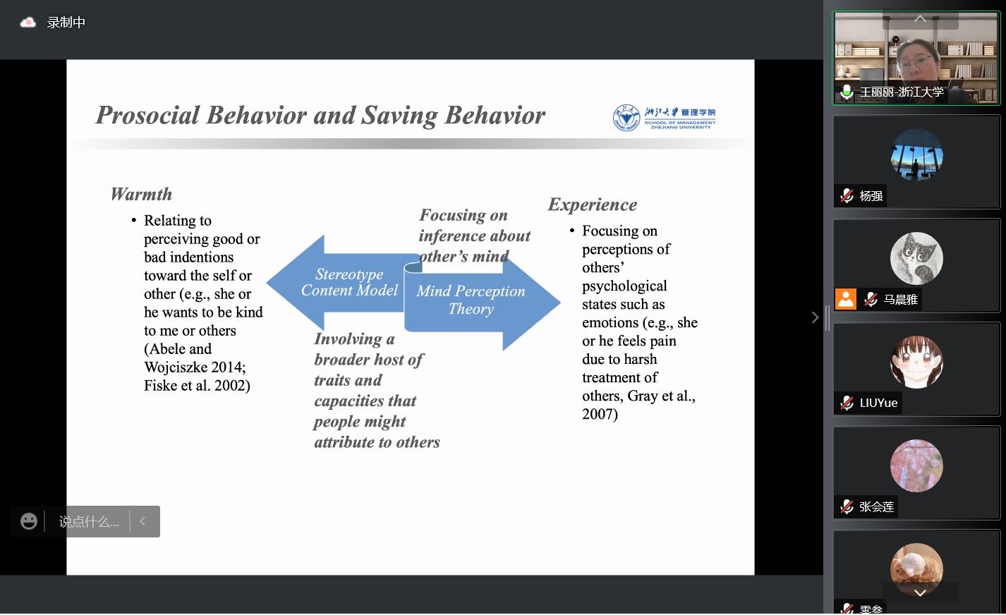 随后,王丽丽教授分别基于刻板印象内容模型(Stereotype Content Model)和心智感知理论(Mind Perception Theory)对其先后发表于Journal of Consumer Research(JCR)和International Journal of Research in Marketing(IJRM)的系列论文进行对比解读,指出消费者如何处置和分配金钱在一定程度上取决于消费者如何看待金钱以及金钱的哪个属性被激活:一方面,从拟人化视角看待金钱会提高金钱的感知温暖,导致消费者更愿意将金钱用于帮助他人;另一方面,拟人化看待金钱在一定程度上也提高了金钱的感知脆弱,导致消费者更愿意保护金钱,将其放在更加安全的地方,从而提高储蓄行为。此外,在论文讲解过程中,王丽丽教授还分享了自身撰稿与投稿的心路历程,以期对老师、同学们有所启示。