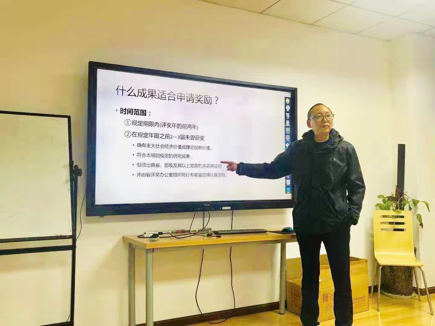 在“关注评奖过程”板块,评奖工作分为六个阶段:资格审查、初评、学科组评审、专家组复审、省评奖委员会终审、省政府批准并授奖。在研讨会尾声,李老师回答了有关研究成果被政府采用的问题,本次研讨会在师生们的热烈掌声中圆满结束。