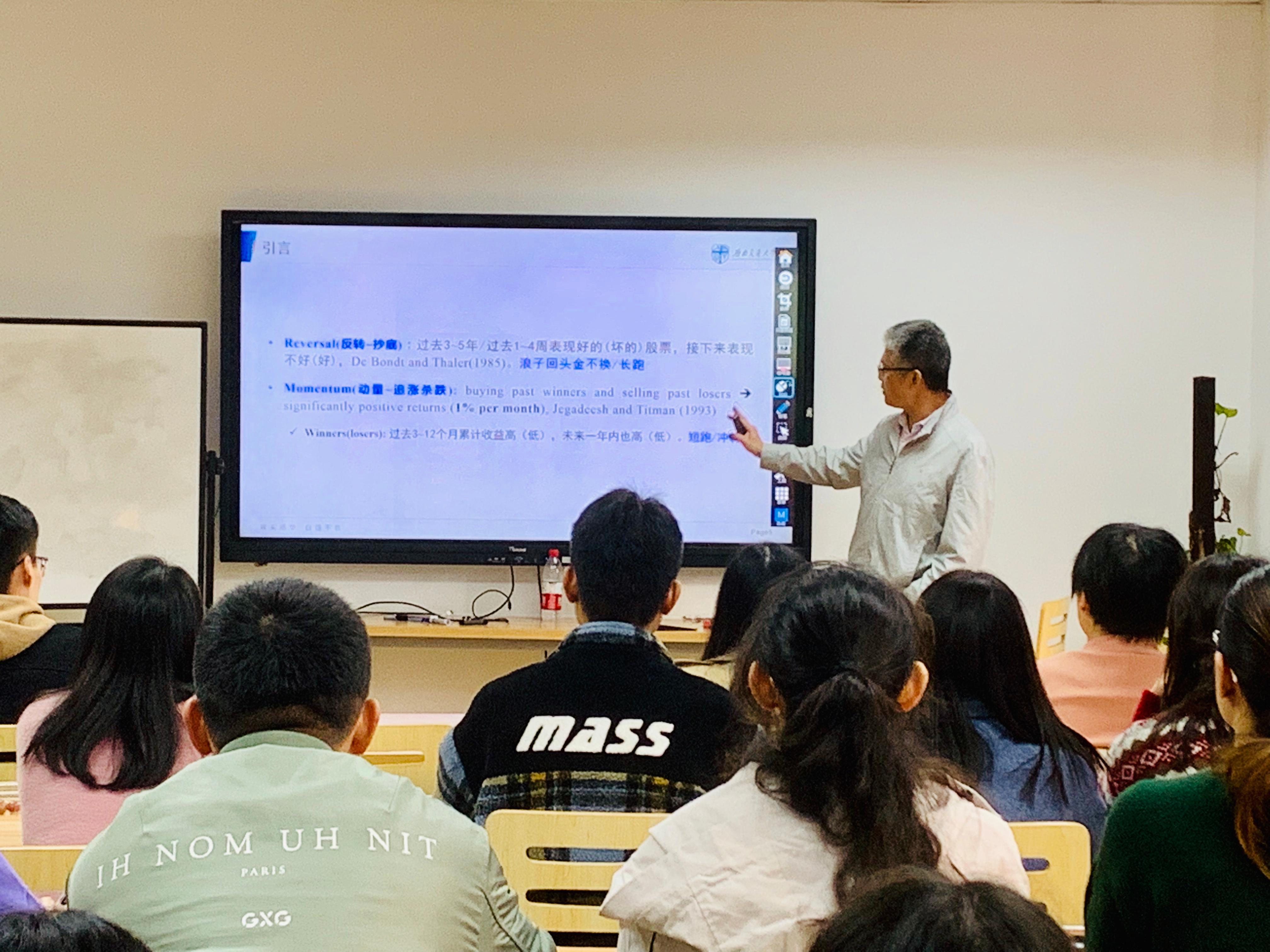 2021年10月28日下午13:00在九里校区0411教室,金融与财务学系中国特色金融研究创新团队朱宏泉教授以“分析师共同覆盖视角下的动量溢出效应研究”为题为色色动漫