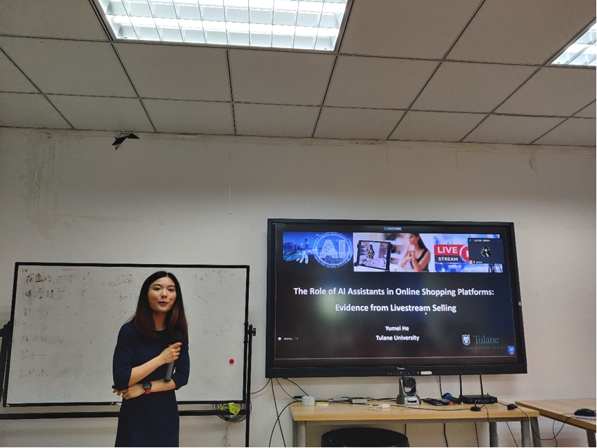 2023年6月16日上午,杜兰大学弗里曼商学院助理教授何玉梅应邀在学院0411室开展题为“The Role of AI Assistants in Livestream Selling: Evidence from a Randomized Field Experiment”的学术讲座。讲座由学院信息系统与运营管理系刘盾教授主持,色色动漫