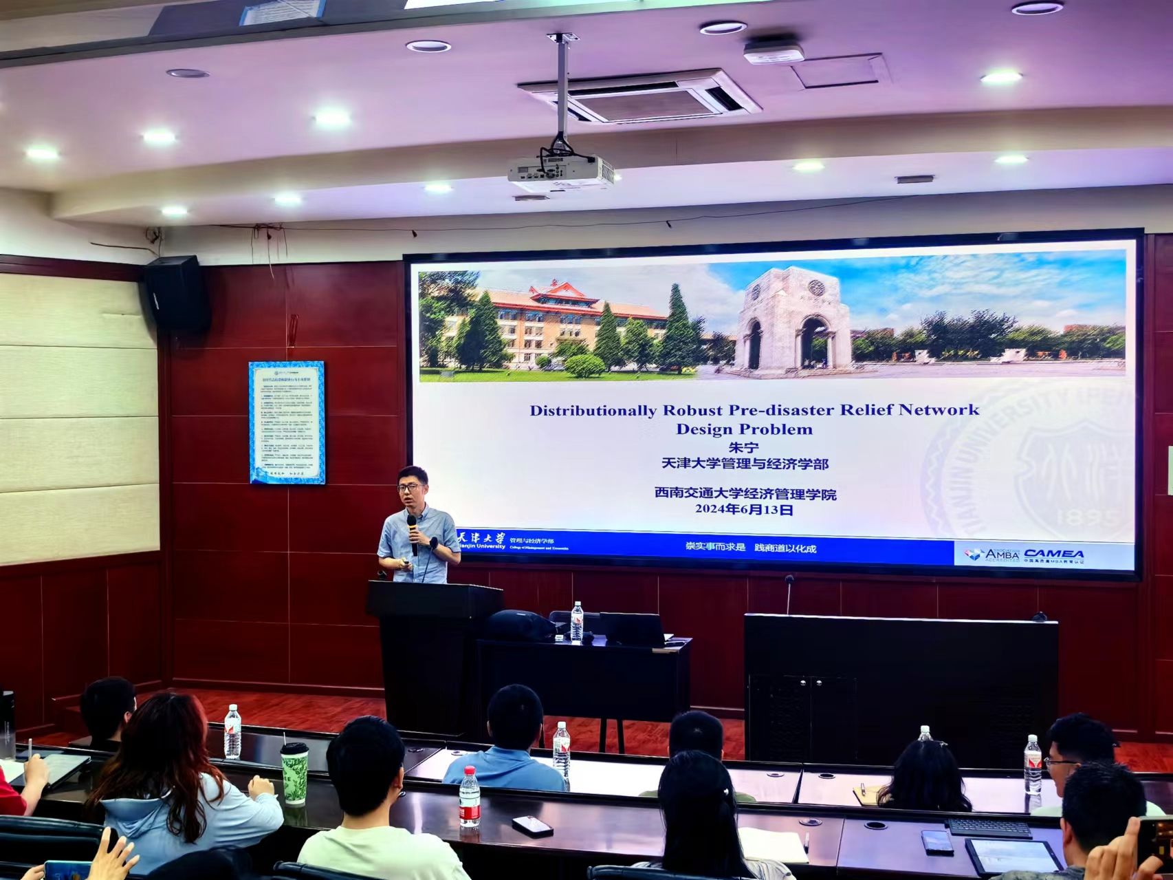 2024年6月14日,天津大学管理与经济学院朱宁教授应邀在学院为师生作题为“应急管理中的鲁棒优化方法”的学术讲座。院长韩科教授主持了此次学术活动,学院部分教师及研究生参加了讲座。韩科教授介绍了朱宁教授的学术背景及成果,并对他的到来表示热烈欢迎与感谢。