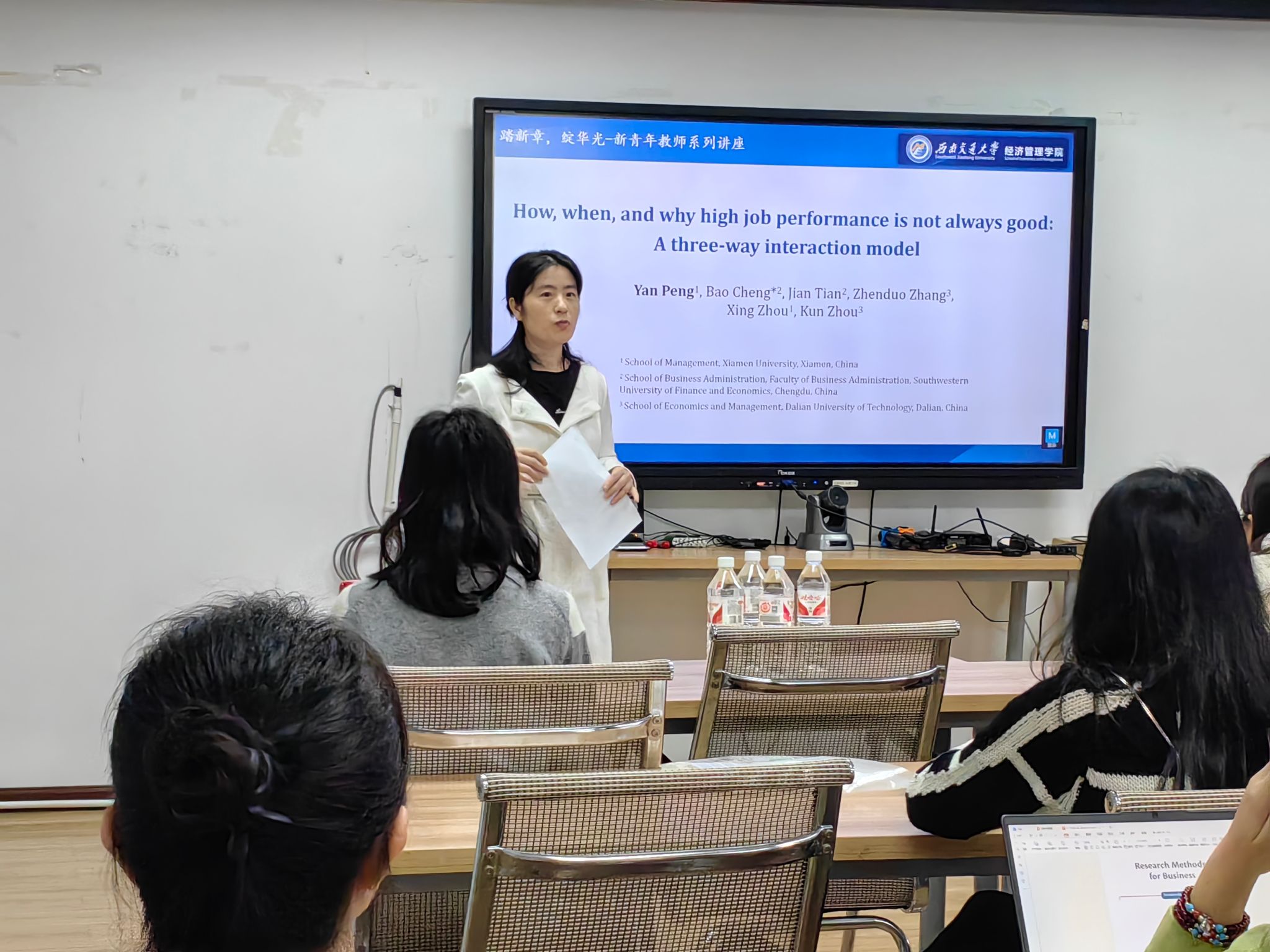 创新创业与管理学系助理教授彭艳博士主讲,主题为“How, when, and why high job performance is not always good: A three-way interaction model”讲座吸引了学院众多硕博研究生及对组织行为学有浓厚兴趣的老师参与,由色色动漫