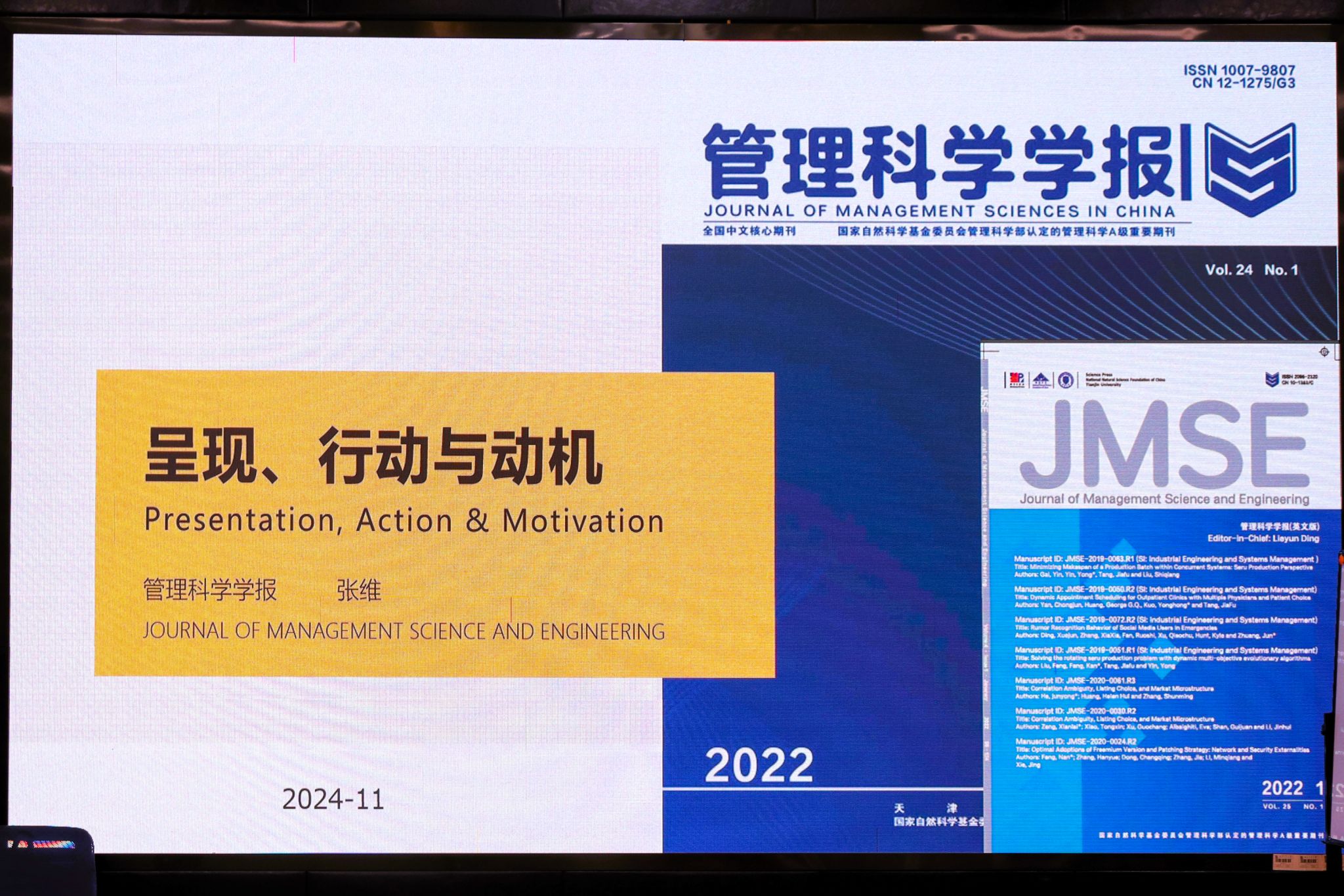 张维教授从学术生态系统的视角,围绕研究中的动机、行动和呈现三个方面,与师生们进行了深入分享。首先,在“动机”方面,张教授结合其担任期刊编辑的丰富经验,从项目选择、“本土化”与“普遍性”、“热点”以及期刊的“选题”多个层面展开论述,为师生们揭示了学术研究中的核心驱动力。接着,在“行动”方面,张维教授重点强调了论文研究的严谨性与规范性,以及如何讲好中国故事,增强研究的学术价值。最后,在“呈现”方面,张教授以论文题目、摘要、引言和文献综述为切入点,逐一讲解了论文写作的关键环节。张教授通过多个实际案例,生动阐释了如何用简练的学术语言,讲述一个有趣且富有意义的学术故事。他指出,一篇优秀的学术论文本质上就是用科学的语言讲好一个故事。