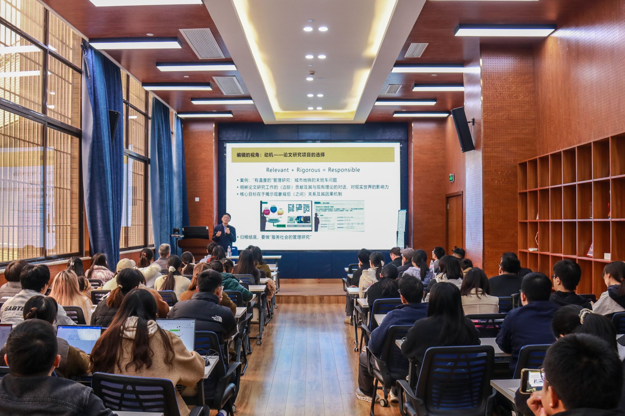 师生带来了一场题为“学术研究中的动机、行动和呈现”的学术讲座。香港中文大学(深圳)贾建民教授作为特邀嘉宾出席,学院部分教师及60余名研究生参与了此次活动。本次学术活动由副院长马锋主持。