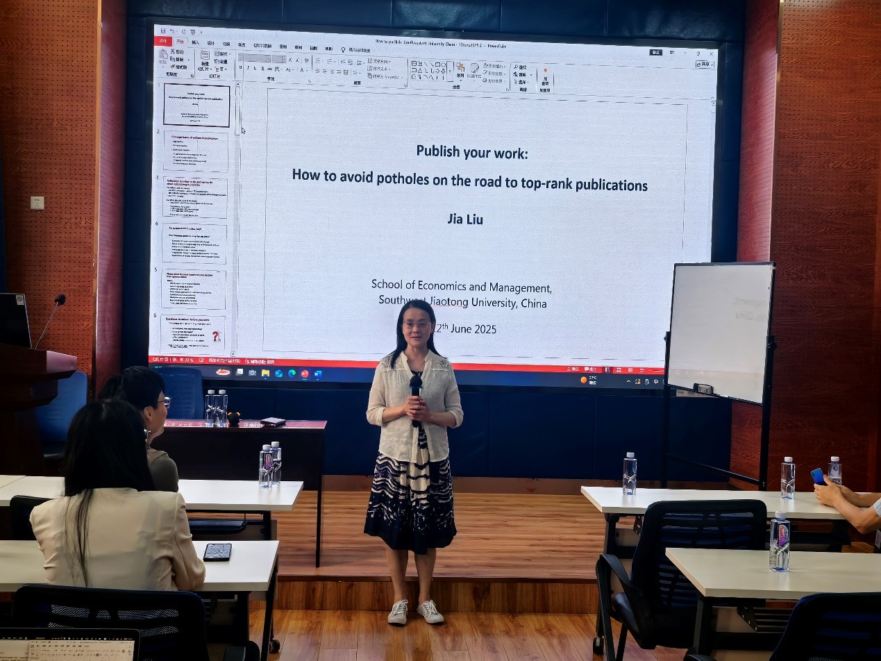 讲座期间,学院朱宏泉教授等与刘教授进行了深入互动,就“如何在论文中平衡文献综述与研究贡献的呈现”,“编辑和审稿人更偏好单一假设还是竞争性假设的表达方式”等问题展开讨论,刘教授逐一进行了细致解答。