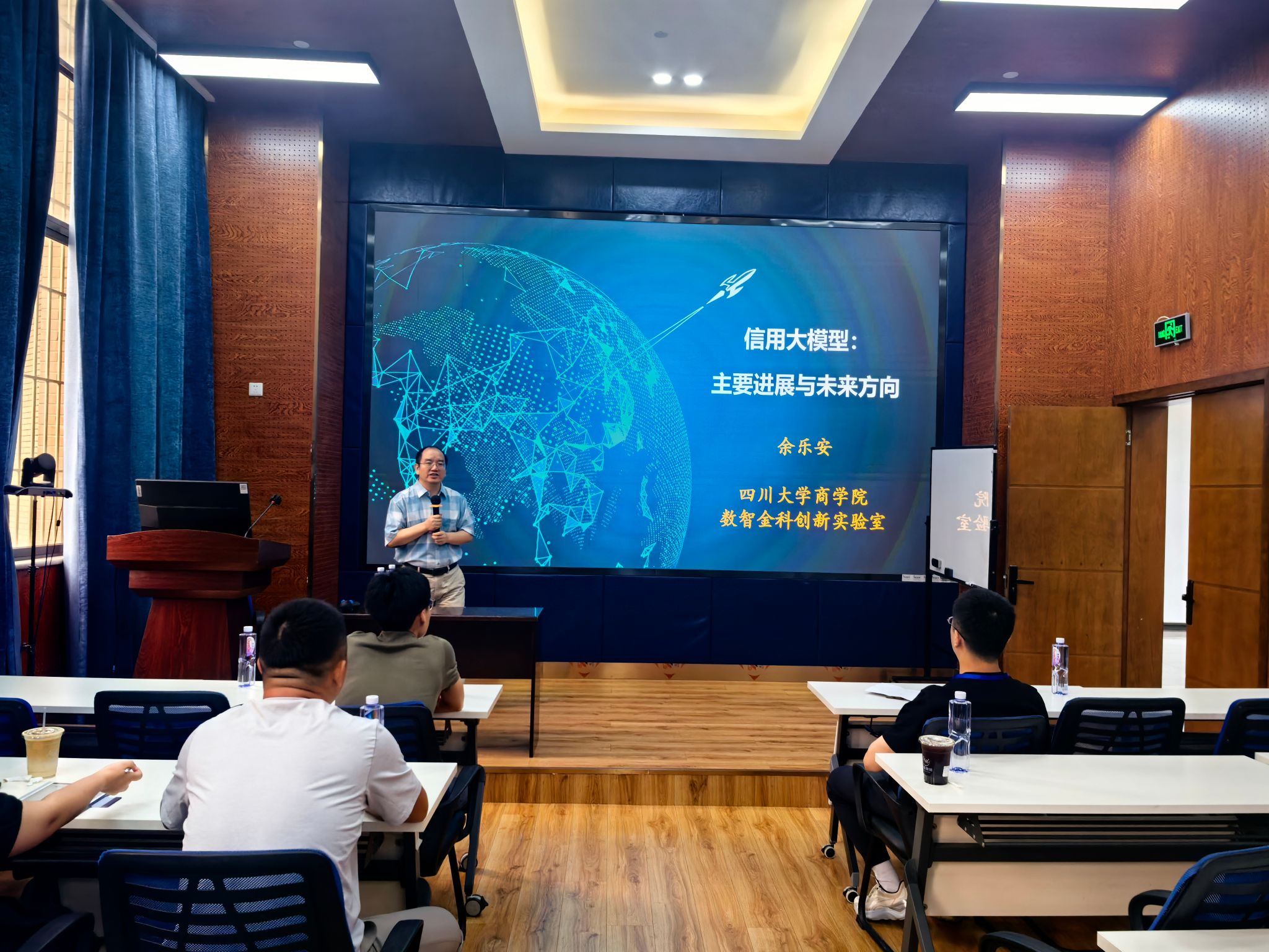 在报告中,余乐安教授首先回顾了语言模型“从统计到智能跨越”的四次技术浪潮,系统梳理了大语言模型的发展历程,指出其本质特征在于自学习、生成式和强泛化能力,并强调了大语言模型所具备的涌现性、扩展性与复合性等核心特征。随后,余教授深入介绍了信用大模型的关键技术路径,涵盖数据类型、模型类别以及预训练、零样本/少样本学习与监督微调(SFT)等核心方法,并结合两个行业应用案例和两项代表性研究工作,详细阐释了信用大模型在实际决策流程中的应用场景和技术优势。最后,余乐安教授探讨了信用大模型面临的风险与挑战以及未来的发展方向。