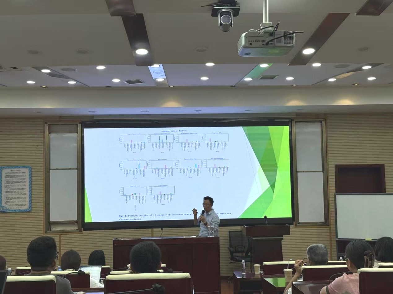 首先,魏宇教授以生活中的绿色金融概念为切入点,引出绿色股票的“双重收益”特性。然而,绿色股票的收益通常伴随较高波动性。随后,魏宇教授进一步介绍了棕色股票的定义,并指出此类公司多为商业模式成熟、收益稳定的传统行业企业,其价格波动相对稳健。在此背景下,魏宇教授指出,目前尚无充分的实证研究探讨绿色与棕色股票在投资组合中的分散化作用,这也正是本研究切入的关键所在。随后,魏宇教授从方法和数据、网络分析结果、分散化效应的强度等方面详细介绍了他的研究内容。