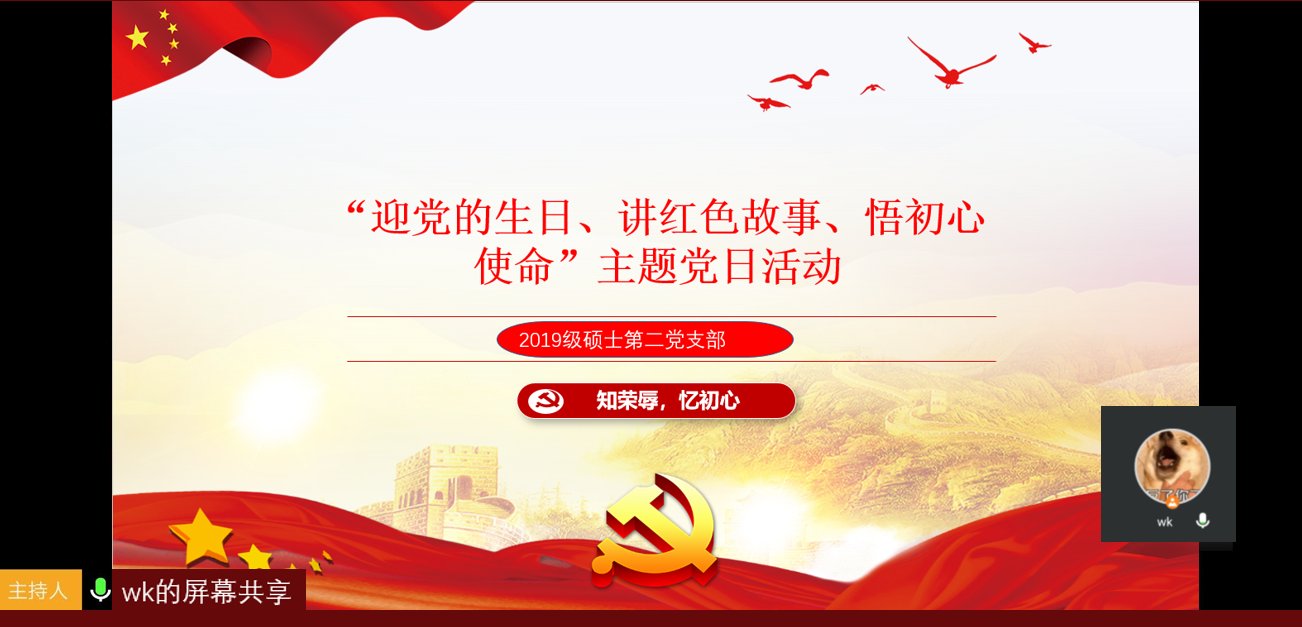 硕士2019级第二党支部通过腾讯会议网络平台开展“迎党的生日、讲红色故事、悟初心使命”主题党日活动。活动由党支部书记王可主持,党支部全体成员与会。