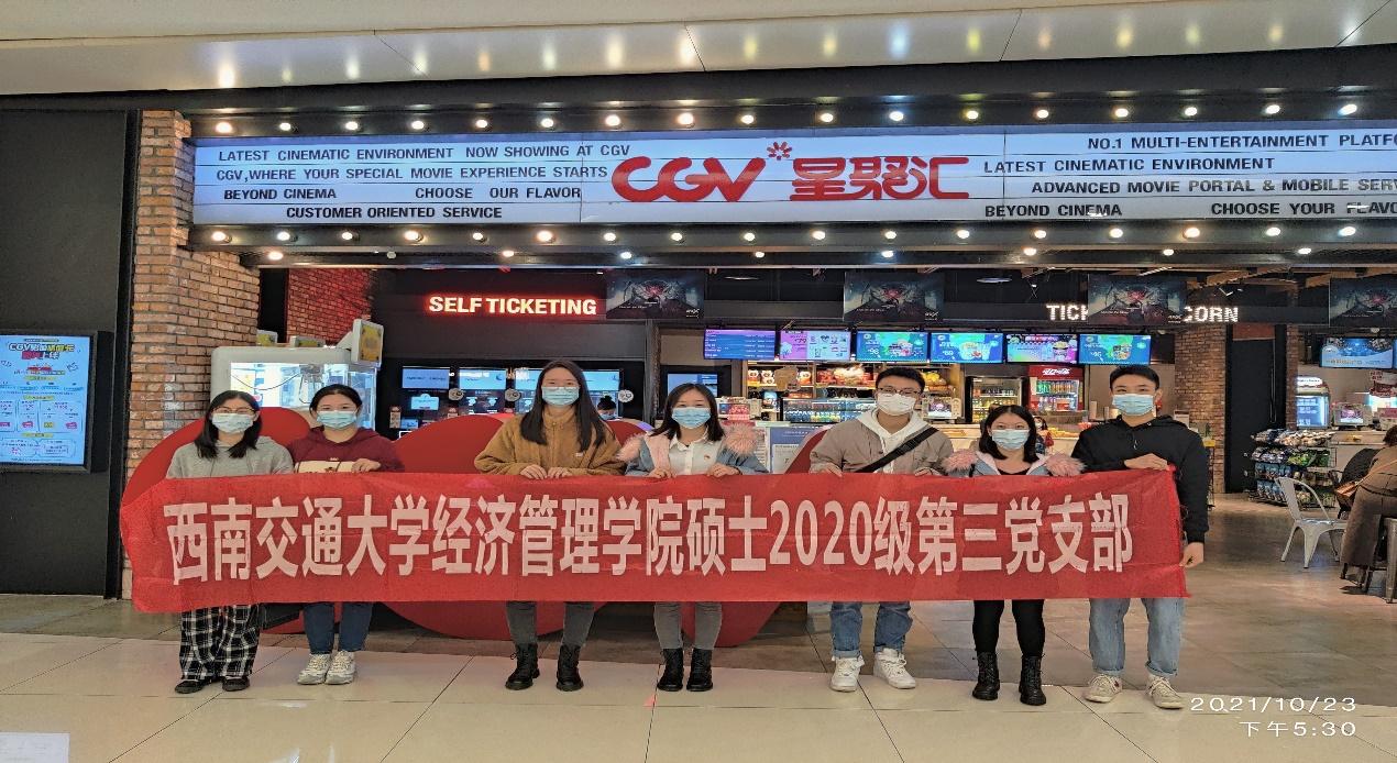 为庆祝中国共产党成立100周年,中国人民解放军建军94周年,硕士2020级第三党支部于2021年10月23日下午组织了《长津湖》观影活动,重温红色历程,感受爱国情怀。
