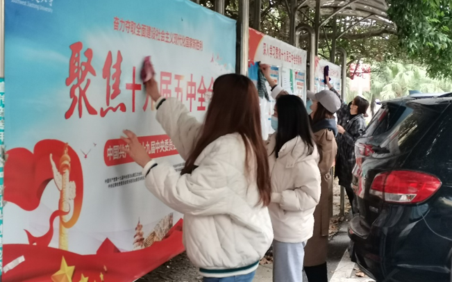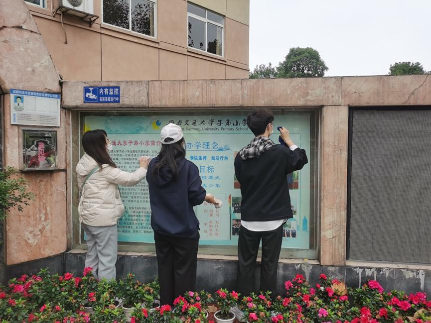 子弟小学旁宣传栏的清理工作。活动伊始,组长给各个组员分配了明确的任务,让本次志愿活动有条不紊地进行。